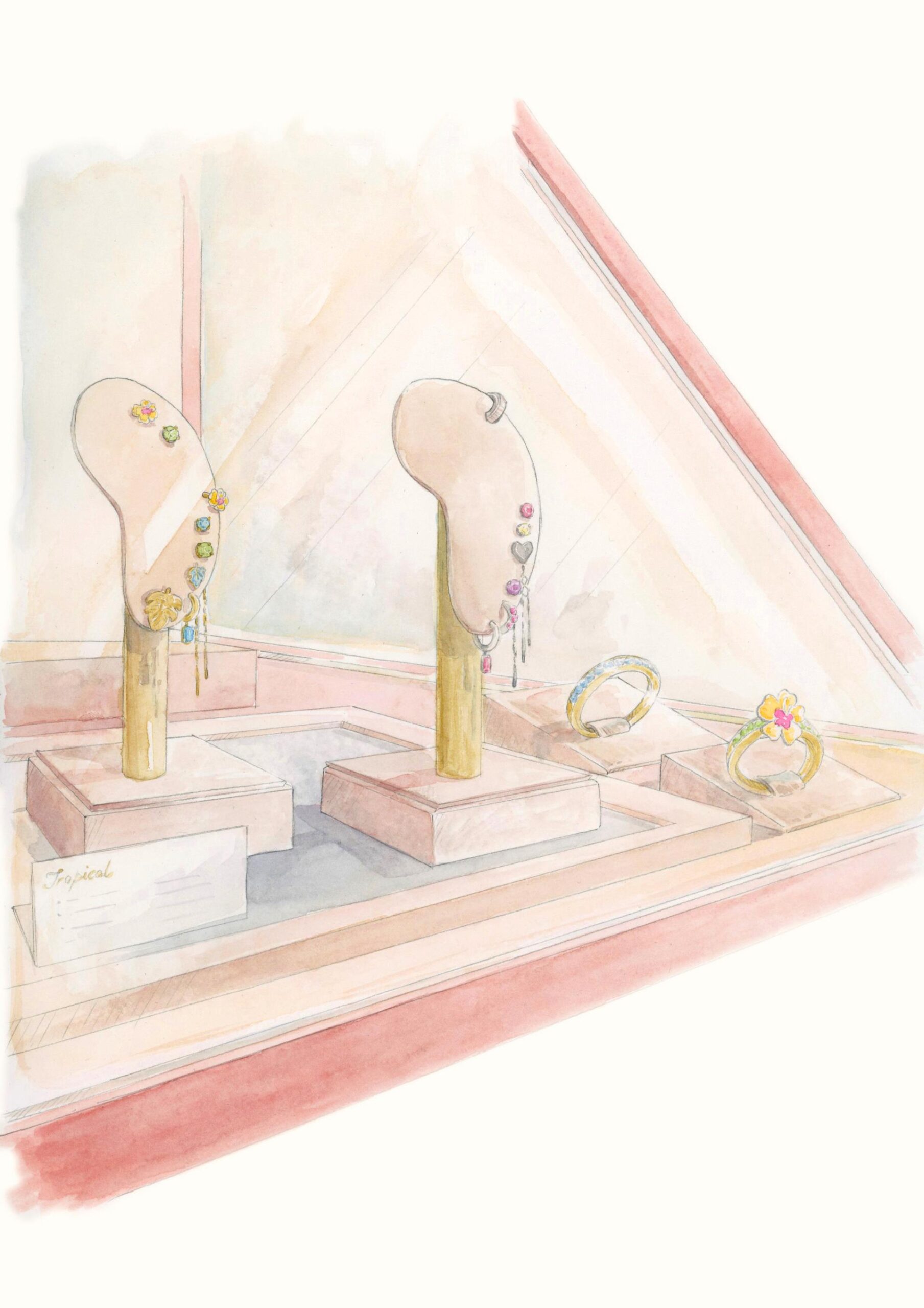 Piccoli e delicati pezzi colorati, divertenti, da combinare in infinite parure e abbinamenti, per indossare la voglia di tropici, di paesaggi lontani, di estate. Il Choker Panama, con pietre di olivina verde e perle di fiume bianche, e il Choker Tropical, con pietre turchesi e perle di fiume bianche, sono già le collane più apprezzate. La collana Avocado, con un piccolo avocado rifinito di smalto verde, dove il nocciolo lascia il posto ad uno zircone lucente. L’hoop e il bracciale Avocado, da mixare con il Lovli Luce Lime e il Charmi Luce Tropical nei toni del verde e del celeste, completano la parure. La linea Ibisco – uno dei fiori più estivi e romantici, con petali color pesca e fucsia, è composta dall’immancabile Lovli, dal bracciale, dal choker e da un orecchino. La Monstera, la più famosa e amata tra le piante tropicali, brilla nell’orecchino a lobo Amazzonia, nelle due versioni argento 925 e placcato oro, sul Lovli Amazzonia smaltato turchese, e su bracciale e choker Amazzonia, impreziositi da zirconi turchesi. Un pappagallino dalle piume turchesi e verdi è il protagonista dell’orecchino Pendol e della Collana Rio. L’orecchino e la collana Palma, nelle versioni argento e placcato oro, rappresentano l’albero tropicale con piccoli e lucenti zirconi bianchi.