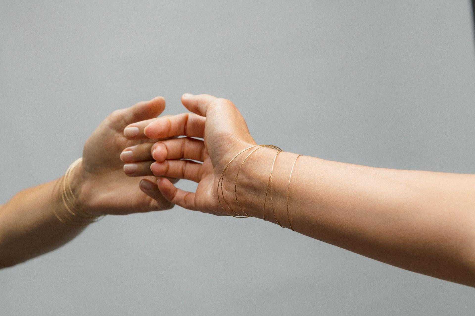 Charm Feeling – sfera in oro giallo 18 carati forata all’interno, misura small; Charm Peace – sfera in oro giallo 18 carati forata all’interno, misura medium; Charm Happiness – sfera in oro giallo 18 carati forata all’interno, misura large; Charm Swing – oro giallo 18 carati e diamanti bianchi.