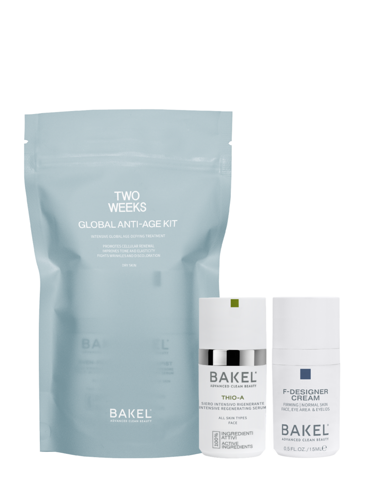 GLOBAL ANTI-AGE KIT – DRY SKIN. Trattamento anti-età globale intensivo. Viso, collo e décolleté. E’ un trattamento anti-età globale di 2 settimane, ideale per pelli secche. Agisce sul rinnovamento cutaneo e ridensifica la pelle, migliorandone tono e compattezza. Il kit contiene: 1 Siero THIO-A – Charm Size (10 ml) 1 Crema F-DESIGNER Dry Skin – Charm Size (15ml) 70,00 €uro