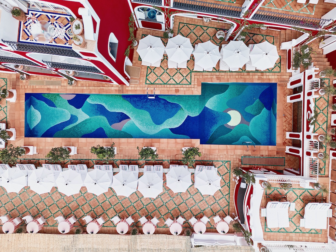 Bisazza riveste la nuova piscina dell’hotel di lusso Le Sirenuse a Positano, di proprietà della famiglia Sersale, su progetto dell’artista contemporaneo di origine svizzera Nicolas Party.