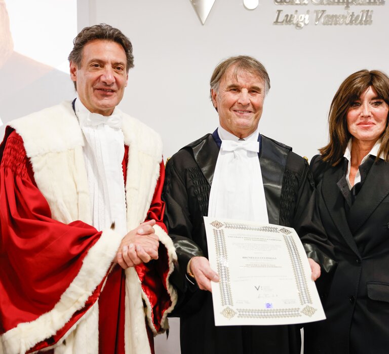 Presso l’Aula Magna del Rettorato dell’Università degli Studi della Campania “Luigi Vanvitelli” in Caserta, Brunello Cucinelli ha ricevuto, da parte del Dipartimento di Architettura, il Dottorato di ricerca honoris causa in “Design per il Made in Italy: Identità, Innovazione e Sostenibilità” per le sue «abilità imprenditoriali ed il suo indubbio valore umano e spirituale», come ha precisato il Magnifico Rettore Professor Gianfranco Nicoletti.