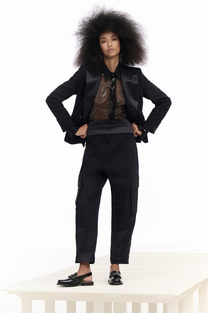 Tailleur impeccabili fondono maschile ed esotico con una predilezione per il valore della forma. I classici intramontabili sono impreziositi da un tocco di leggerezza, mentre citazioni utility introducono echi funzionali su tessuti eterei e femminili per blazer, gonne e pantaloni.