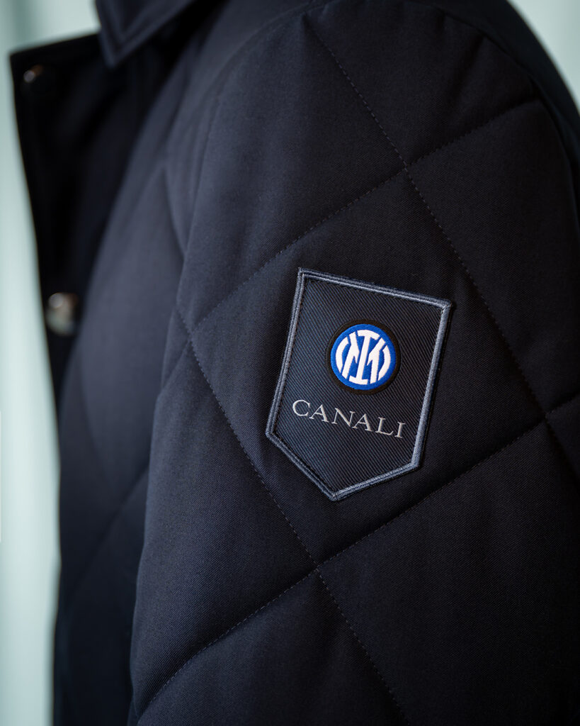 L’allenatore Simone Inzaghi, il Management e lo staff del Club vestono invece un completo di lana Impeccabile con camicia, pullover di lana merino e cravatta di seta jacquard. Insieme, un soprabito imbottito tre quarti di nylon soft touch e un carcoat morbido e resistente. Il logo Canali e lo stemma dell’Inter sono combinati all’interno della freccia, appositamente ridisegnata e adattata alle colorazioni dei capi. La sciarpa in cashmere e lana vergine in verde Brianza, colore iconico di Canali, completa una collezione pensata per riflettere l’essenza distintiva del brand.