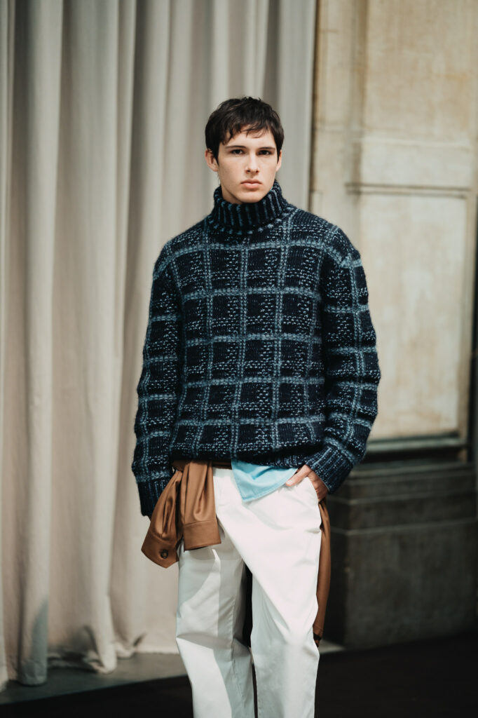 Elemento di raccordo dell’intera proposta è la maglieria, che esprime al meglio la cultura del saper fare Canali. Filati preziosi come cashmere e merino pettinato ultraleggero disegnano una proposta versatile: polo in lana leggera indossate sotto blazer e doppiopetti, cardigan più materici in lana-cashmere abbinati a denim giapponesi dall’attitudine rilassata, fino ad alpaca e vicuña per i momenti più invernali.