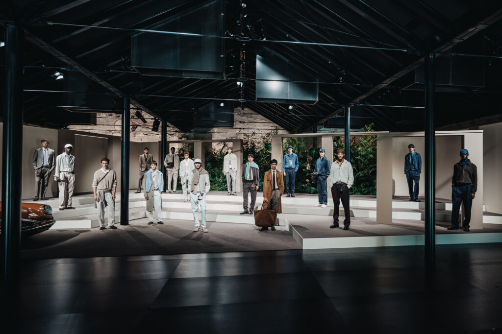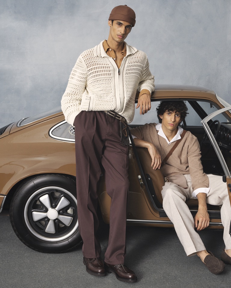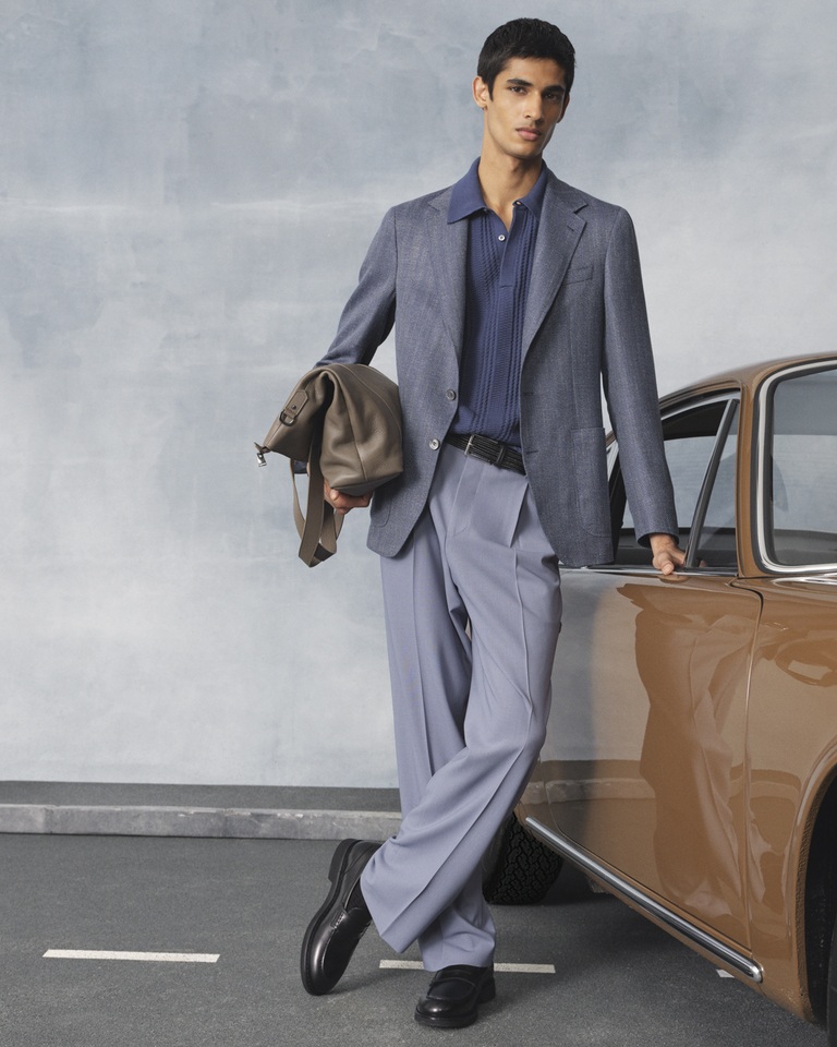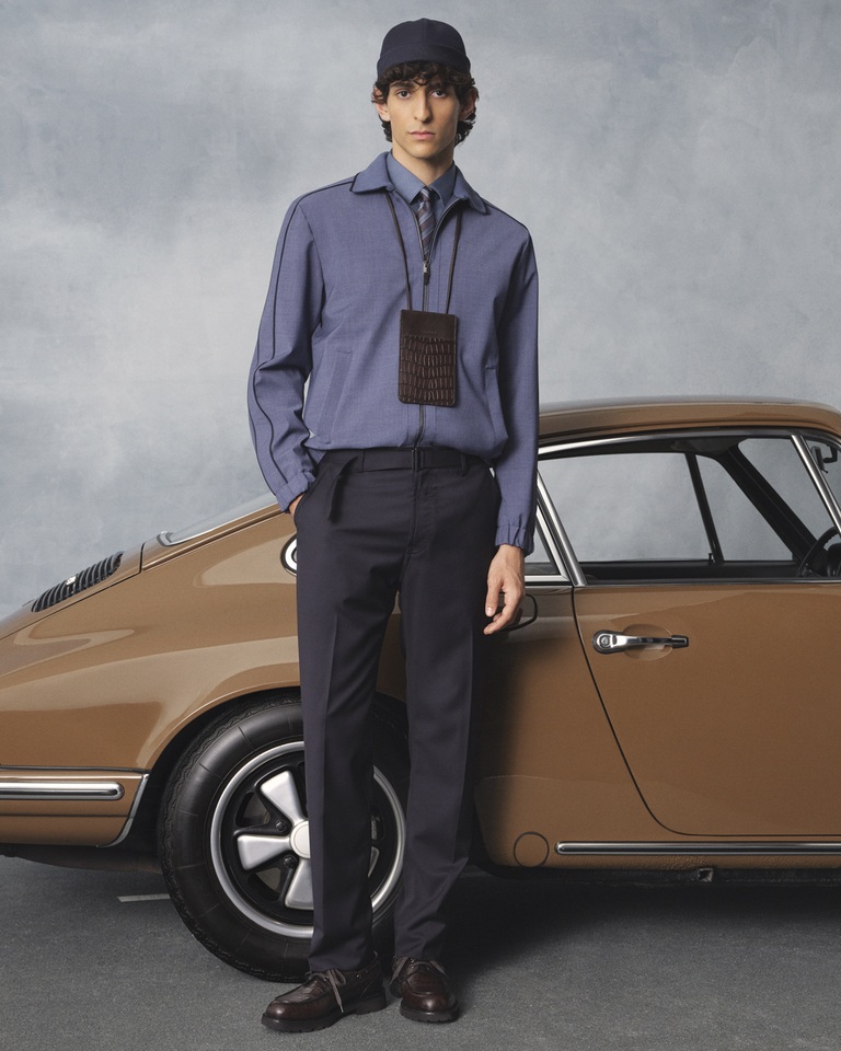 Queste suggestioni si riflettono in silhouette che combinano una classe disinvolta a una sobria eleganza, e in capi d’abbigliamento che richiamano gli interni delle auto di lusso, con i loro pregiati rivestimenti in pelle e dettagli raffinati.