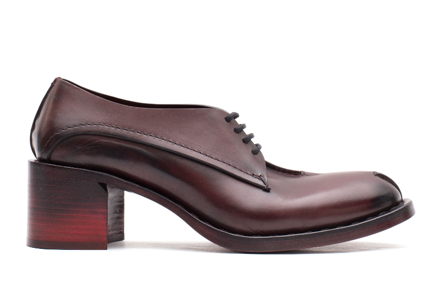 La collezione si articola in tre forme principali, studiate per combinare comfort e design: la punta, chiodata a mano per enfatizzare spigoli e carattere; la tonda (altezza 80 mm), con cava del piede studiata per amplificare lo slancio mantenendo equilibrio e proporzione; e la forma urbana, ispirata alle scarpe inglesi da uomo (altezza 55 mm), costruita con pelli doppiate e sfoderate per un risultato strutturato ma leggero e dinamico. I tacchi, sfumati manualmente dal scuro al chiaro, non superano gli 80 mm ma garantiscono comfort e stabilità grazie alla costruzione ergonomica e alla doppia gomma piuma nella soletta. Le finiture con cere rare, applicate nelle fasi finali, donano luce, profondità e una patina unica, definendo uno stile immediatamente riconoscibile.