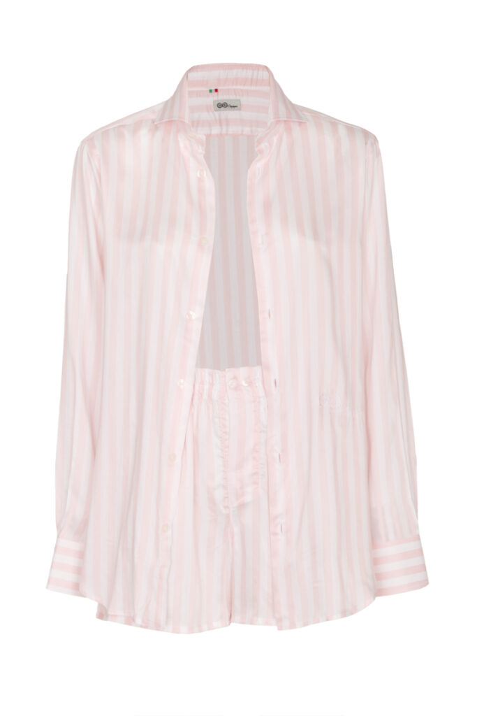 Tutte le camicie sono abbinate a boxer coordinati, pensati sia come loungewear che come shorts, da indossare con naturalezza indoor e outdoor, offrendo versatilità, praticità e stile in ogni occasione.