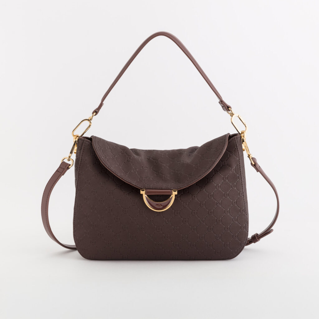 A metà settembre ci spostiamo a Roma, città eterna che si affermava come crocevia di movimenti artistici, emancipazione e ridefinizione dell’identità femminile. Le borse nate da questa ispirazione raccontano una femminilità consapevole, sofisticata, radicata nella storia ma capace di guardare avanti. Le forme diventano più nette e decise, i volumi pieni e materici, con costruzioni pulite che richiamano l’architettura monumentale romana e la forza visiva della sua simbologia. La palette si scalda di toni intensi: neri profondi, rossi vibranti, nuance crema e cuoio evocano insieme rigore e calore. Le metallerie brunite e le fodere interne rosso carminio aggiungono una nota di carattere. All’interno del pacchetto ispirato a Roma, un posto speciale è riservato ad Aeterna. Questo modello prende vita dall’Archivio Storico di Carpisa, che custodisce i codici estetici, i materiali e i saperi che hanno costruito l’identità del brand nel tempo. Aeterna si ispira a una creazione iconica degli anni ’70, reinterpretata oggi con sensibilità contemporanea e dettagli progettati per evocare la grandezza della capitale italiana. La silhouette morbida e avvolgente richiama le linee degli archi monumentali romani, mentre la metalleria dorata con riflessi bronzei ne celebra la forza architettonica e il prestigio. La fodera interna, rigata di un rosso imperiale intenso è un omaggio alla passione e alla solennità della città.