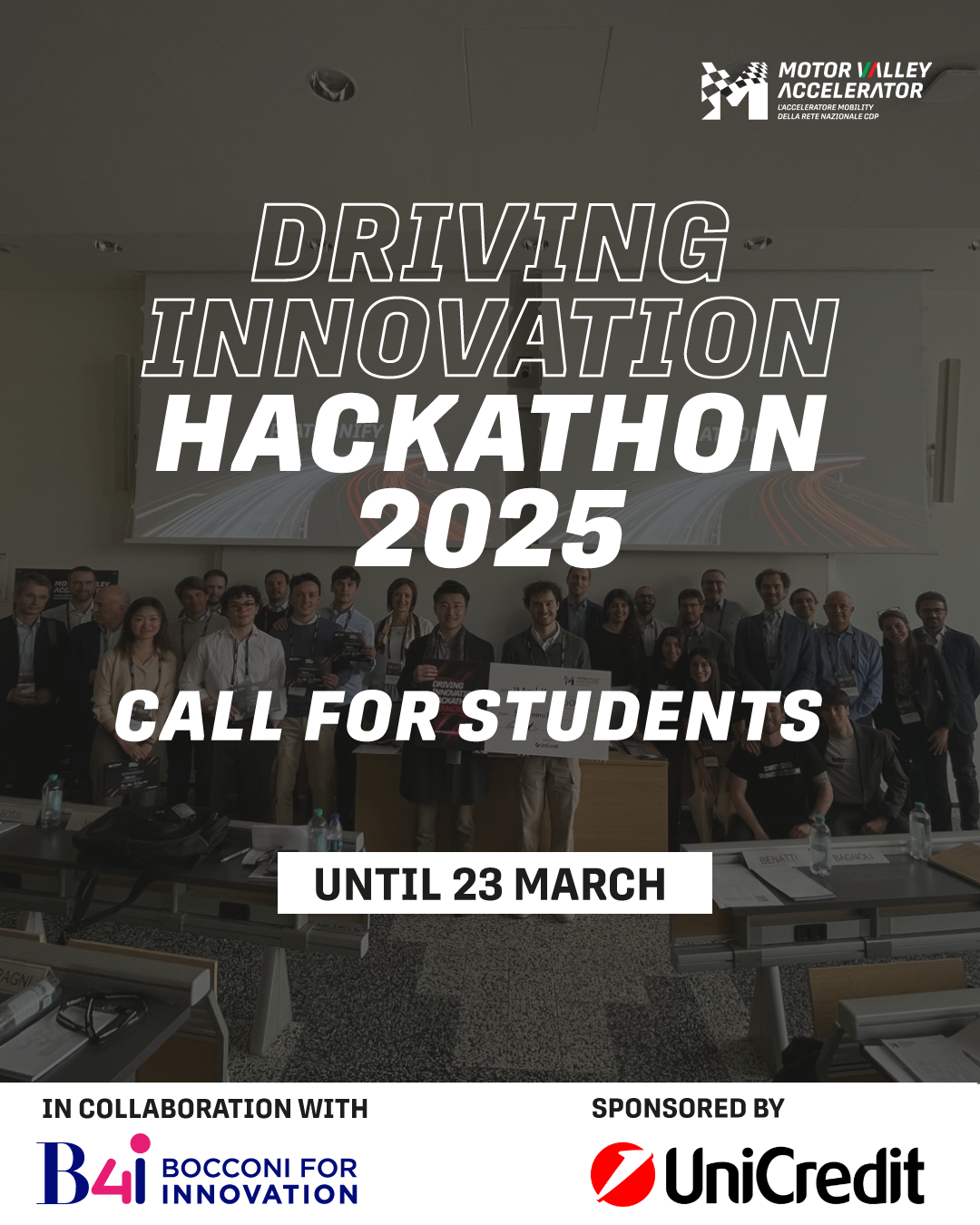 Motor Valley Accelerator, la principale piattaforma di Open Innovation italiana dedicata al mondo dell’automotive e della mobilità, apre la “Call for Students” del Driving Innovation Hackathon 2025, la terza edizione dell’evento realizzato in collaborazione con B4i – Bocconi for Innovation.Per partecipare è possibile inviare la propria candidatura o come singolo studente oppure come team, fino al 23 marzo […]