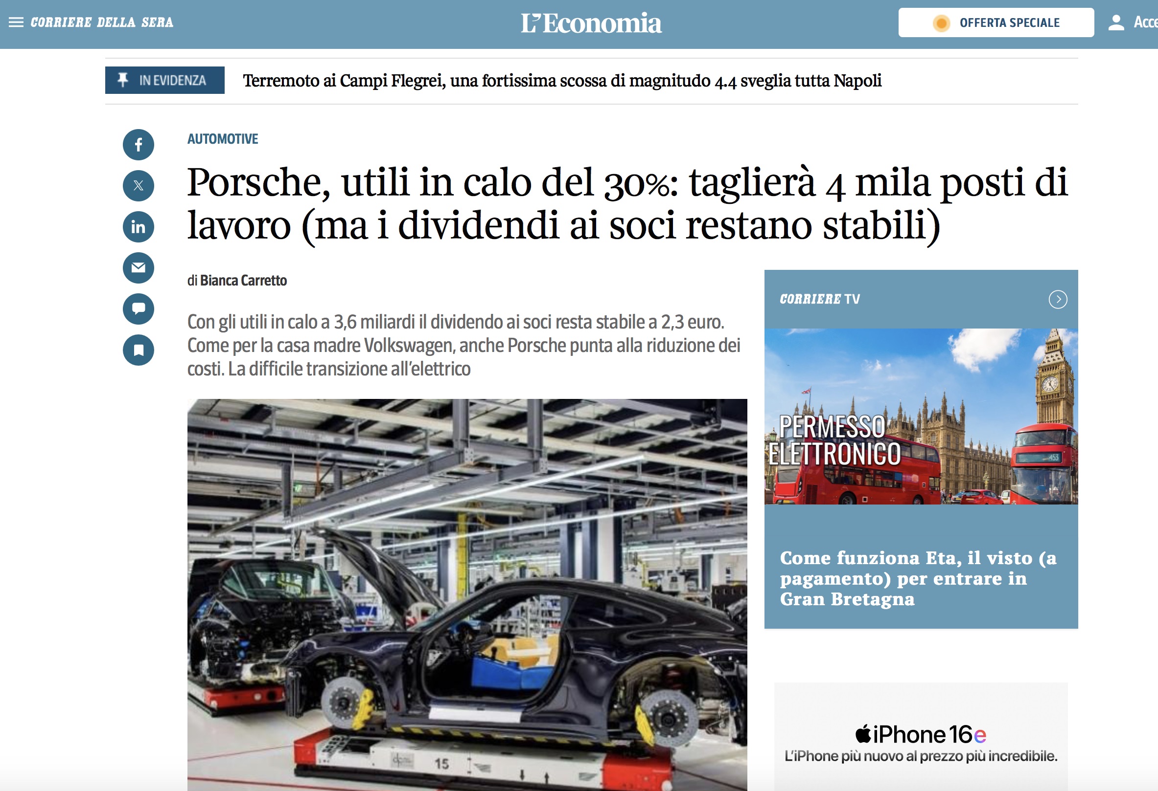 Porsche AG — la casa di Stoccarda controllata dal gruppo Volkswagen di cui è azionista anche la holding Porsche SE in mano agli eredi della famiglia — rappresenta da sempre il premium dell’auto tedesca, ha registrato, nel 2024, una discesa degli utili a causa del calo del 28% delle vendite in Cina e dell’aumento dei […]