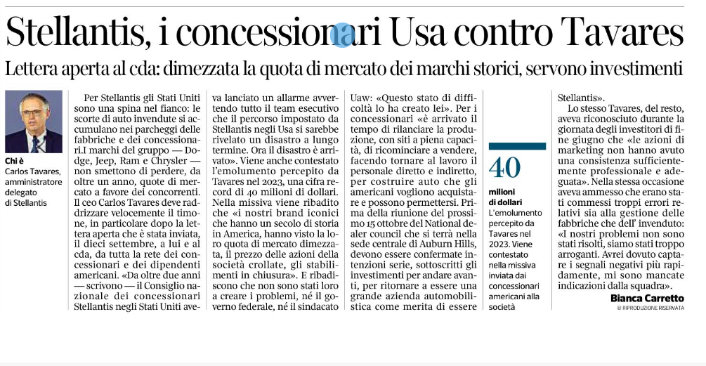 Per Stellantis gli Stati Uniti sono una forte spina, le scorte di auto invendute si accumulano nei parcheggi delle fabbriche e dei concessionari.I marchi del gruppo – Dodge, Jeep, Ram e Crysler – non smettono di perdere, da oltre un anno, quote di mercato a favore dei concorrenti. Il ceo Carlos Tavares deve raddrizzare velocemente il timone, in particolare dopo […]