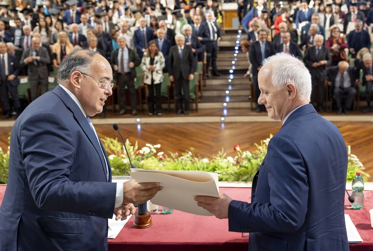Il Presidente Sergio Mattarella, ieri, a Roma, ha assistito alla consegna del titolo di laureato illustre a Luciano Fontana, direttore del Corriere della Sera, nel corso della XI edizione della Giornata del Laureato.