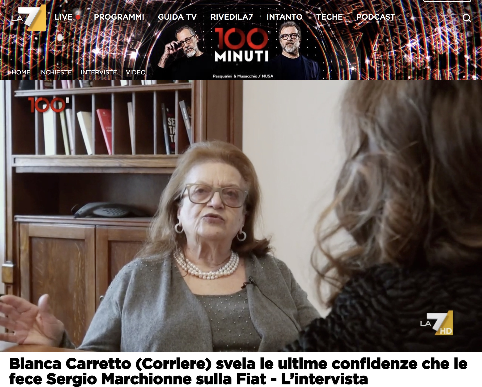 «Non avrebbe mai fatto l’alleanza con Peugeot». La giornalista del Corriere della Sera Bianca Carretto racconta Sergio Marchionne e il suo rapporto con la Fiat, con gli Elkann e gli ultimi desideri prima della morte. L’intervista di Giovanna Boursier nella trasmissione 100 Minuti andata in onda il 29 aprile su La7 .