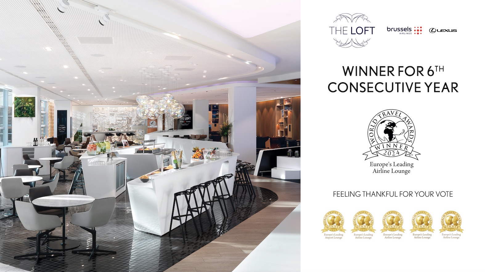 The Loft, la Lounge all’aeroporto di Bruxelles creata da Brussels Airlines e Lexus, è stata nominata, per il sesto anno consecutivo, “Europe’s Leading Airline Lounge 2024” ai World Travel Awards. Con un’estensione di oltre 2.000 mq, The Loft offre un bar centrale, uno spazio per lavorare, massaggi shiatsu, docce extra-sensoriali e stanze per il riposo. […]
