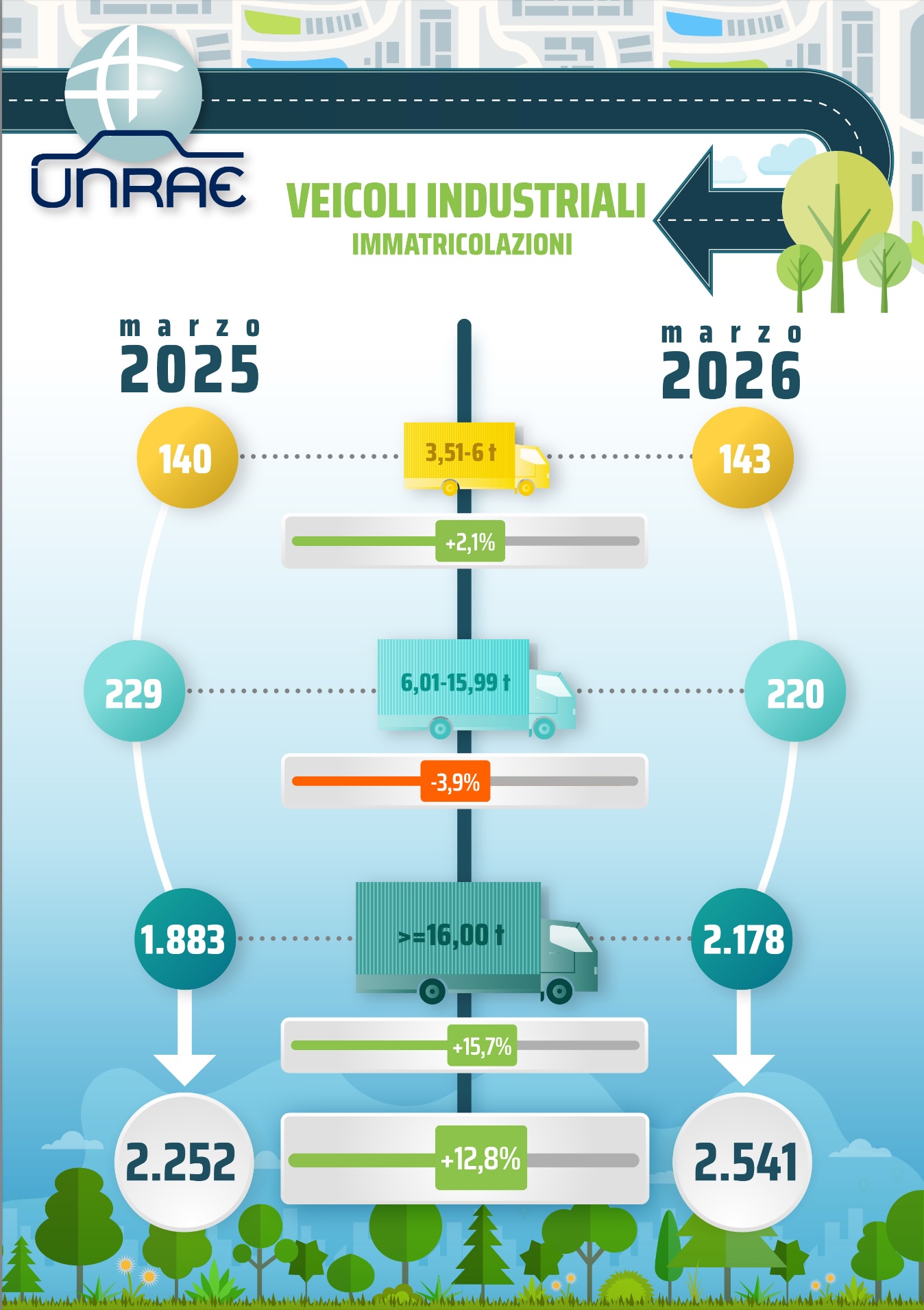 Il mercato dei veicoli industriali mostra un andamento positivo nel primo trimestre 2026, con 7.534 immatricolazioni, in crescita del 6,0% rispetto allo stesso periodo del 2025. Nel dettaglio, il segmento dei veicoli pesanti (≥16 t) registra un incremento del 15,7% su base mensile, trainato in particolare dai trattori stradali (+36,2%), mentre risultano in calo i carri (-9,6%). Anche i veicoli leggeri […]