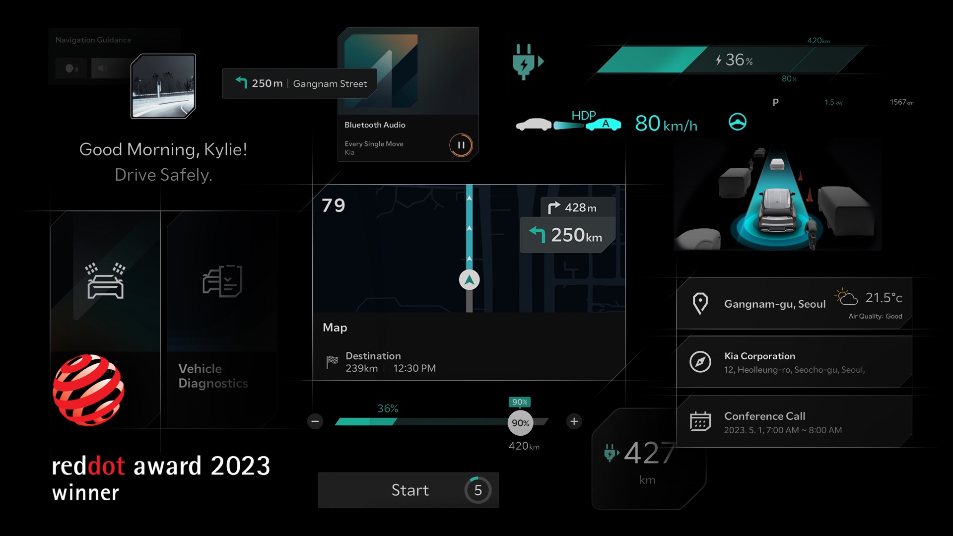 Kia ha ottenuto due riconoscimenti all’edizione 2023 dei Red Dot Awards – Brands & Communications Design: l’installazione che illustra la filosofia “Opposites United” è stata premiata nella categoria Exhibition Design, mentre l’innovativo Connected Car Navigation Cockpit (ccNC) si è aggiudicato la vittoria nella categoria Interface & User Experience Design.