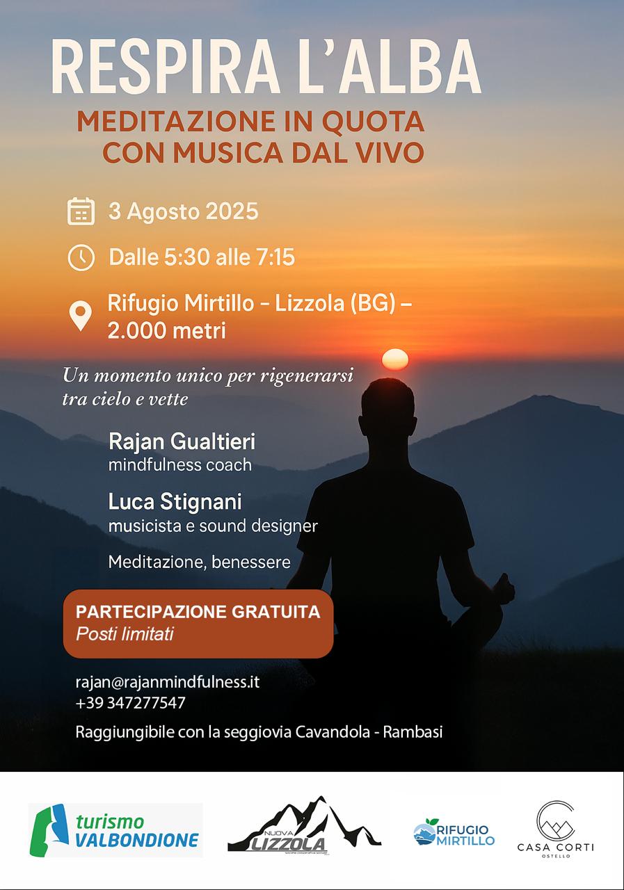 Immagina di aprire gli occhi mentre il cielo si accende di colori tenui e dorati, con l’aria fresca della montagna e, tutto intorno, il silenzio potente delle Alpi Orobie. In questo scenario sospeso tra cielo e terra nasce un evento speciale: una meditazione guidata all’alba con musica dal vivo, pensata per chi desidera riconnettersi con sé stesso […]