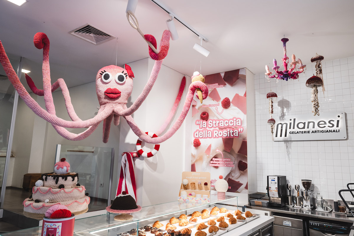 Milanesi Gelaterie Artigianali, la gelateria e pasticceria di gelato a Milano, presenta Il Mondo della Rosita, un’installazione fatta a maglia dall’artista Alessandra Roveda, nota per saper creare soffici mondi colorati. Progetto a cura di Sara Arrigoni. Armata di ferri e gomitoli, l’artista ha dato vita a una creatura portafortuna – il polpo Rosita – a cui buongustai di […]
