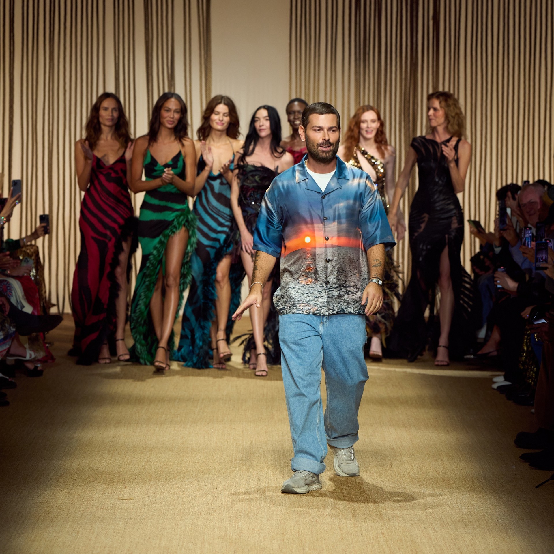 Questo show è il primo che la maison Cavalli mette in scena dopo la scomparsa del suo fondatore, Roberto Cavalli. Come omaggio, sette pezzi iconici dall’archivio sono stati selezionati per apparire in passerella alla fine della sfilata PE 25: tre sottovesti in taglio sbieco con stampa zebrata della collezione ai 2000; un abito da sirena […]