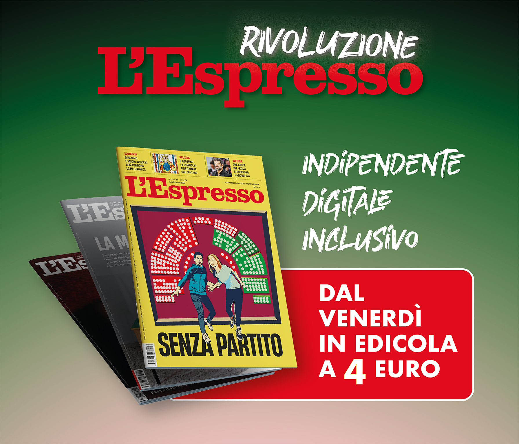 Il settimanale L’Espresso, in totale indipendenza, non sarà più in vendita la domenica in abbinamento a La Repubblica, ma singolarmente dal venerdì a 4 euro. La Repubblica e L’Espresso sono destinati a rimanere, comunque, molto vicini per la loro storia (La Repubblica è nata da una costola de L’Espresso) e per il loro cammino ideale, politico e culturale che hanno […]