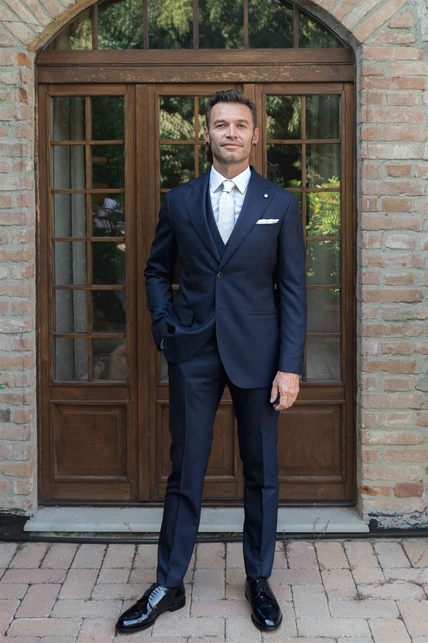 Riccardo Nicoletti, in occasione del suo matrimonio, ha indossato le creazioni firmate Luigi Bianchi Su Misura. L’ abito nei raffinati toni del blu è in 100% lana vergine. La giacca monopetto a 2 bottoni, interamente sfoderata, è caratterizzata da un ampio rever classico e due spacchi. Le comode tasche ad aletta e il taschino a barchetta completano […]