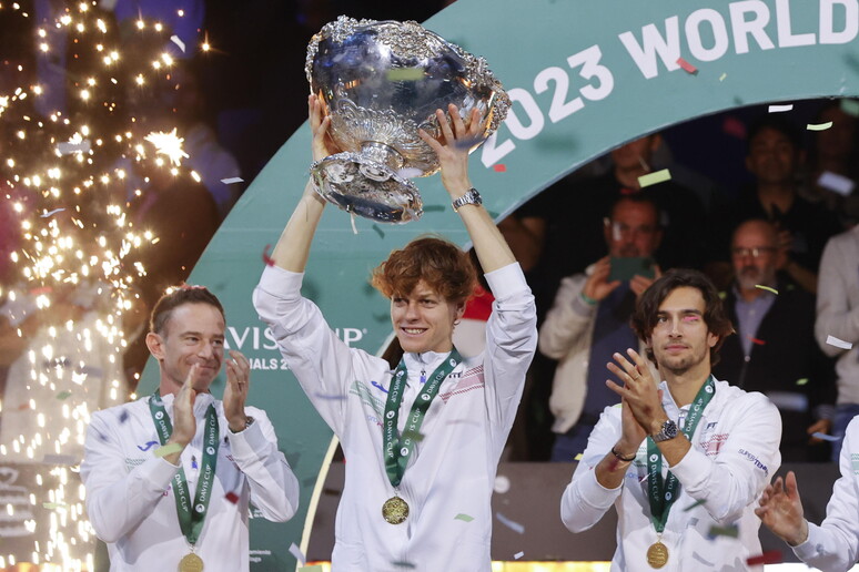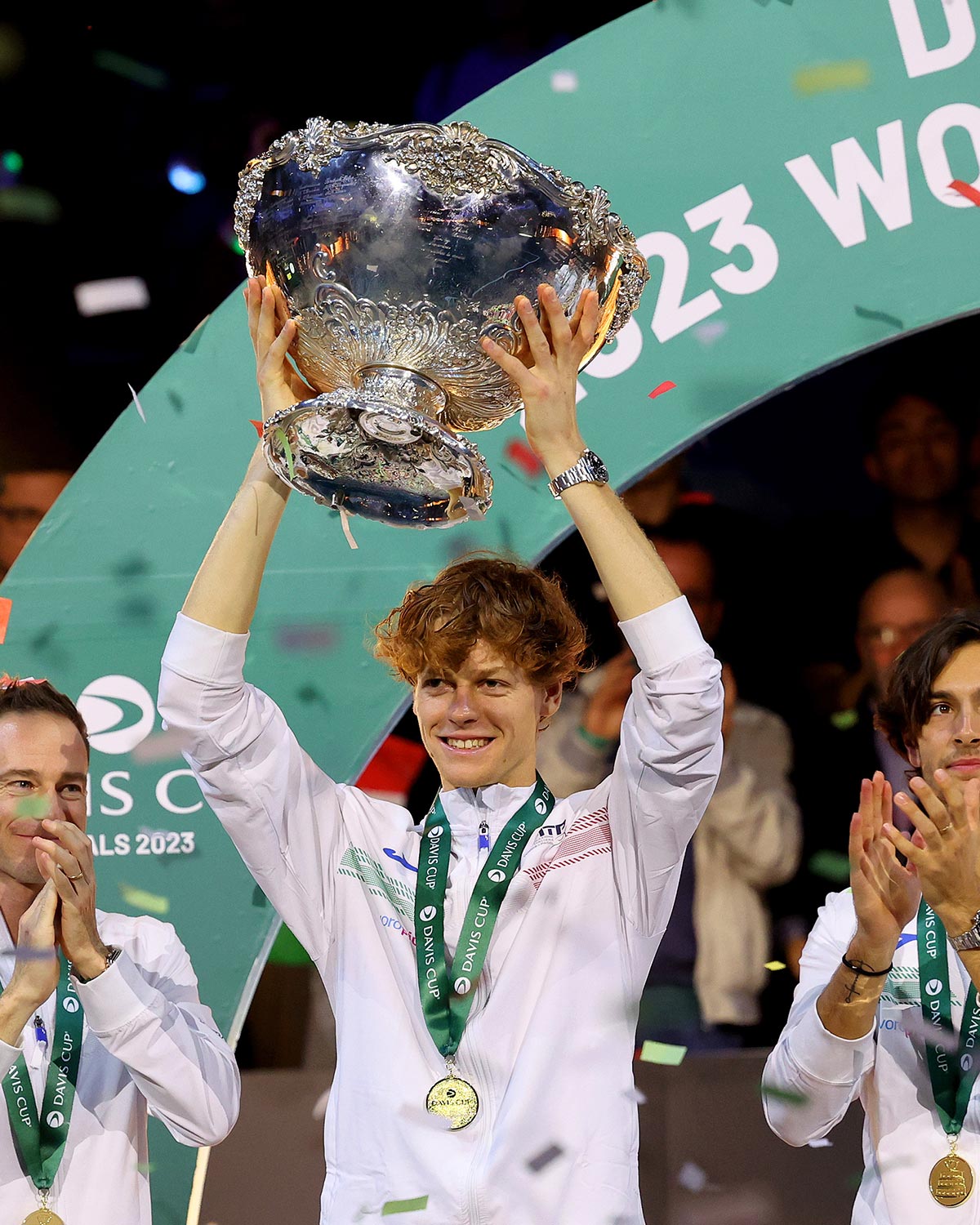 L’Ambassador di Gucci Jannik Sinner è immortalato con le sue borse da viaggio personalizzate in giro per il mondo, inclusa la Coppa Davis, dove ha contribuito a guidare l’Italia alla sua prima vittoria in 47 anni.