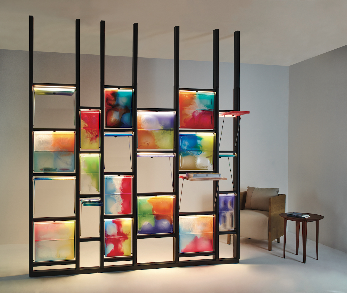 Una struttura in legno di faggio tinto nero e ripiani colorati in resina, illuminati da una luce a LED: parete luminosa, quinta teatrale o libreria, Luigi (o mi amate voi) è il progetto di Gaetano Pesce per Bottega Ghianda presentato nel 2023 alla Milano Design Week, che sancisce la liaison tra il grande artista e designer di fama internazionale e la […]