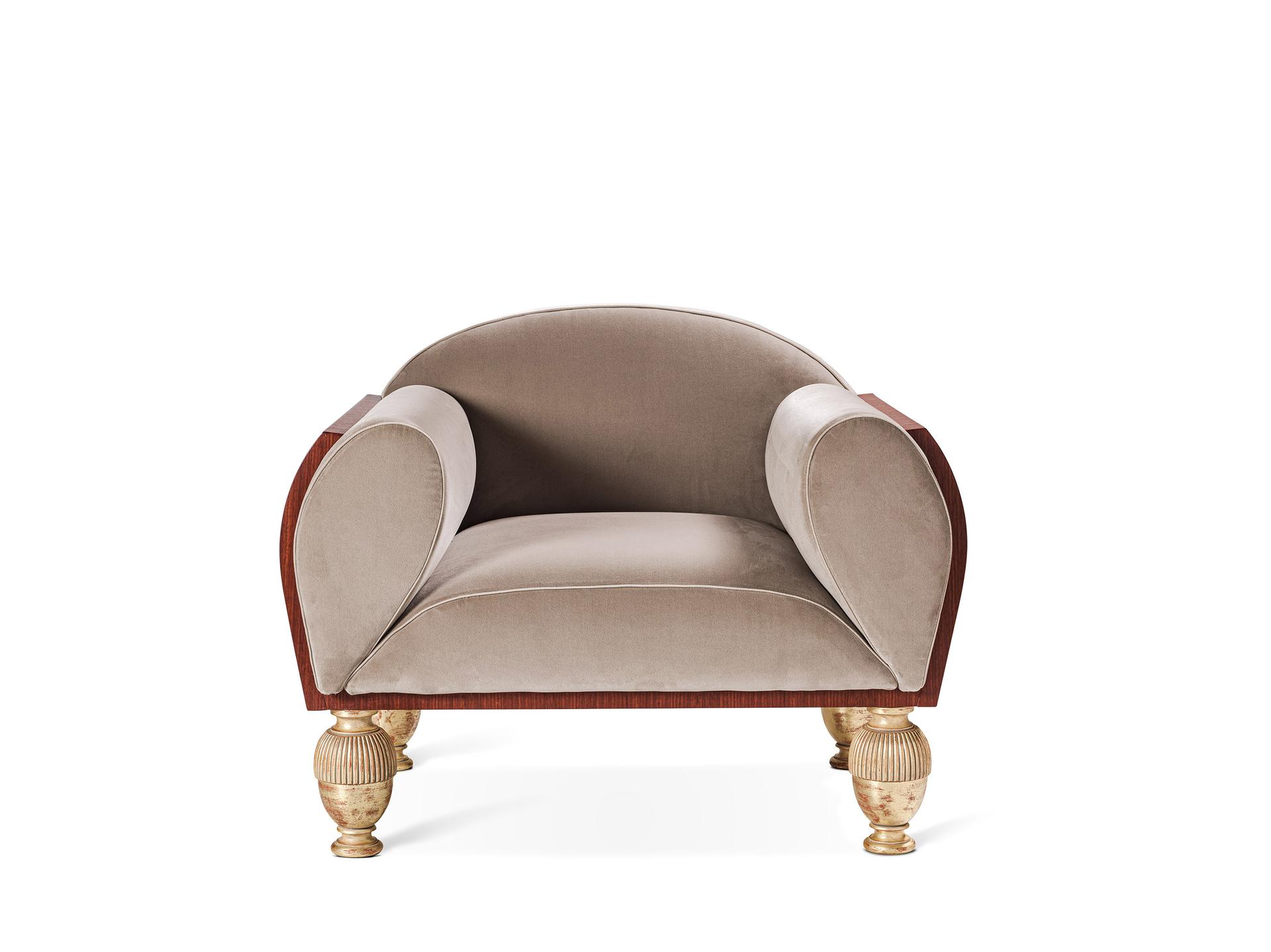 Provasi presenta Tan Armchair, poltrona dal design ricercato, contraddistinta da una struttura curvata placcata in legno Paduk, dal caratteristico color ruggine, che protegge la confortevole seduta rivestita in un velluto dalla tonalità tenue e delicata. La poltrona è impreziosita dal dettaglio dei piedini in legno intagliato a mano con finitura a foglia oro patinata. Tan rappresenta […]