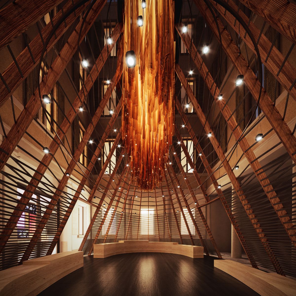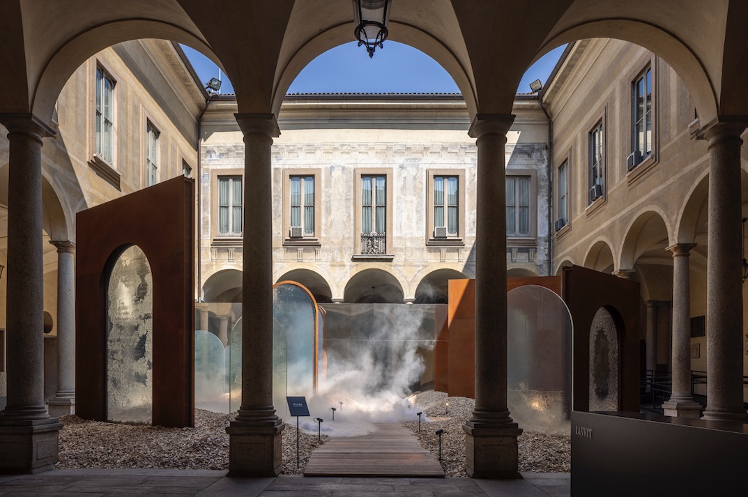 Nello spazio iGuzzini a Milano, architettura del Piermarini dei primi dell’Ottocento, all’interno della corte si erge una forma arcaica a tronco di cono ‘The Primitive Hut’ che evoca la geometria archetipica del rifugio, valorizzata dall’apertura centrale, l’óculo, che raccoglie la luce e ne diffonde gli effetti. Nell’installazione, il binario Filorail, il più sottile esistente al mondo, e il proiettore Newfo, omaggio […]