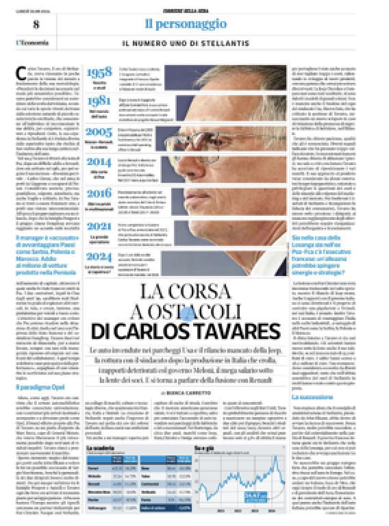 La fusione con Fiat Chrysler non si sta insomma traducendo nel salto sperato, mentre il rilancio di Jeep stenta. Anche i rapporti con il governo italiano si sono deteriorati e il progetto di costruire una gigafactory a Termoli, nel sud Italia, è arenato. Inoltre Tavares è accusato di svantaggiare l’Italia nelle scelte industriali , a vantaggio di altri Paesi come la Serbia, la Polonia o il Marocco.