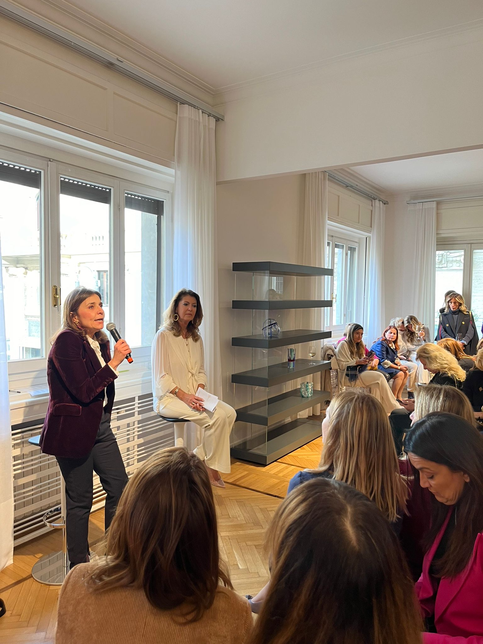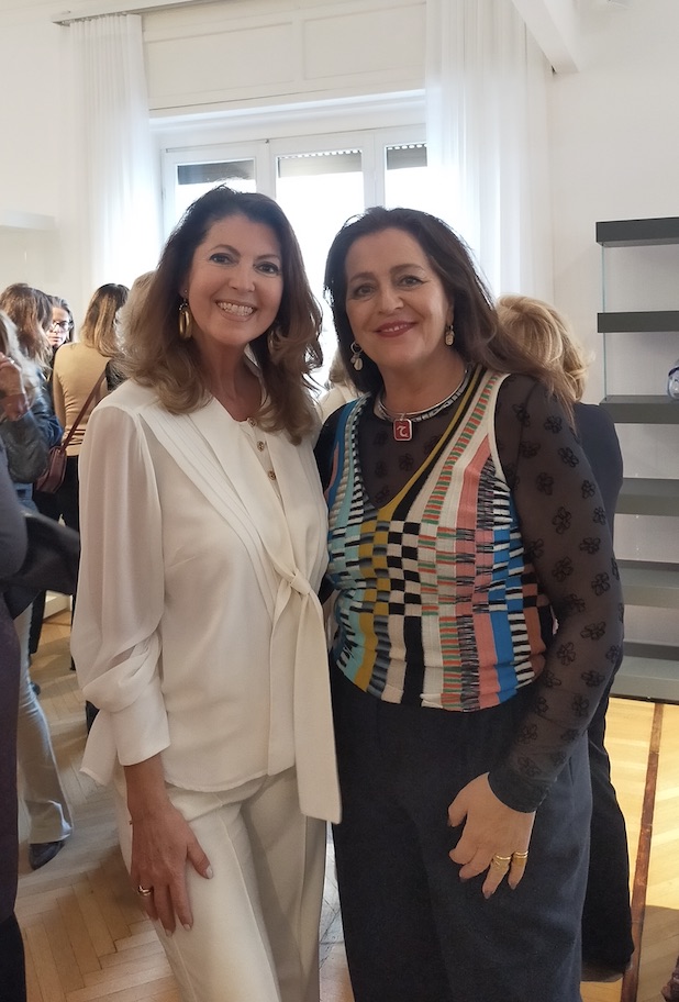 Tornando ad Alessandra Repini e suo marito Arturo Artom, penso che dovevano sposarsi per forza. Non c’è evento, party o cena in cui almeno uno dei due non sia presente. Ti fanno conoscere sempre un sacco di persone nuove, ad esempio ho incontrato Claudia Colla Capo della Rappresentanza della Commissione europea a Milano che ha cercato di spiegare alle signore presenti come funziona il Parlamento Europeo e di come sarà importante andare a votare per avere una buona delegazione europea “per avere a rappresentarci in Europa delle persone che non siano gli scarti del parlamento nazionale”. Tra il pubblico in ascolto riconosco Angela Missoni che saluto con affetto, soprattutto perchè mi chiede di spedirle a casa il CHI E’ CHI e mentre me lo dice io le ammiro le mani fresche di smalto colore viola effetto mirror perchè, mi confida, “noi donne quando usciamo da periodi complessi andiamo dal parrucchiere ed a farci le mani e ci tiriamo su il morale”.