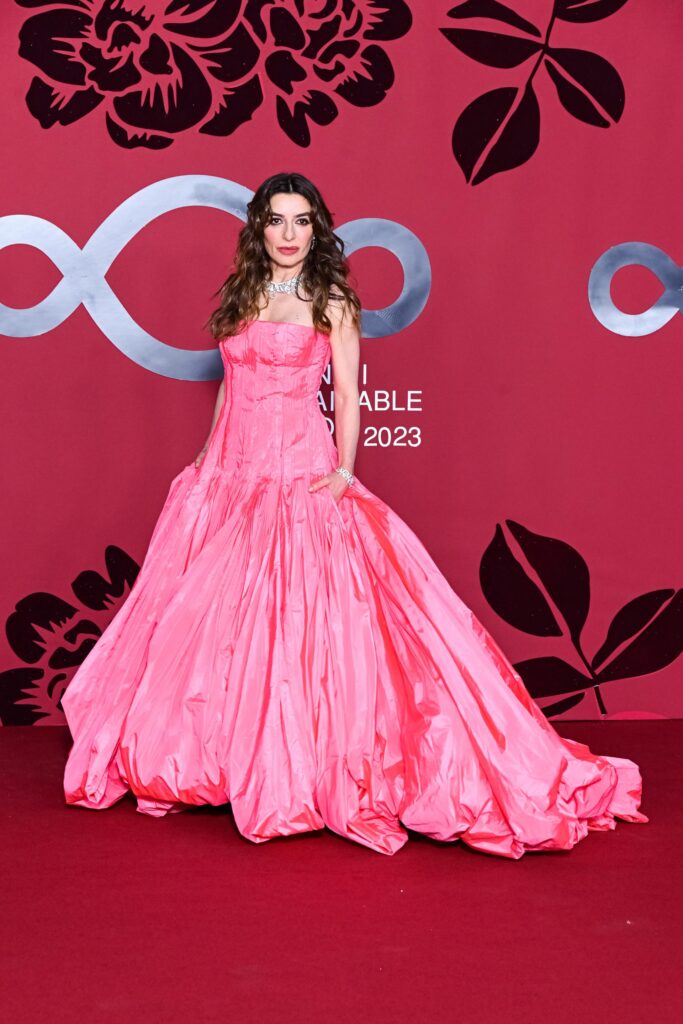 Concept e direzione creativa: La serata è iniziata in Piazza Scala, allestita secondo il progetto creativo di VILLA EUGÉNIE che quest’anno collabora con Camera Nazionale della Moda Italiana per progettare e produrre la cerimonia dei CNMI Sustainable Fashion Awards. Etienne Russo, fondatore, presidente e direttore artistico di Villa Eugénie è il direttore creativo dell’evento. L’allestimento all’esterno ha unito emozione e magia a una dimensione sociale e ambientale. Infatti, mentre il teatro è stato decostruito e percepito nella sua nudità e bellezza, l’esterno si è arricchito dei fondali dismessi, rendendo accessibile il Teatro alla Scala anche a chi solitamente non lo frequenta. Questa trasformazione di oggetti in elementi decorativi diventa una celebrazione dello spettacolo, dove passato e presente si armonizzano, invitando gli ospiti a immergersi nella magia, abbracciando un futuro sostenibile e creando un senso di comunità. La missione è amplificare le storie più belle attraverso eventi sensibili alle tematiche sociali e ambientali. Anche il set teatrale riutilizzato è una testimonianza di sostenibilità, perché il ricordo di un evento dovrebbe essere l’unica impronta che rimane.