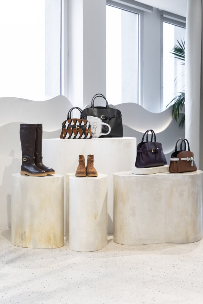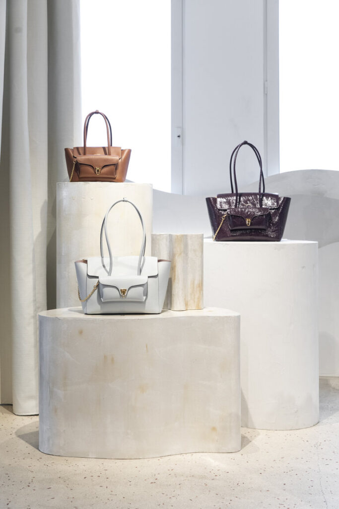 La nuova collezione AI25, che ha racchiuso l’essenza del marchio storico parmense, ha visto come protagoniste le nuove borse e accessori che coniugano design e funzionalità, senza rinunciare ad un tocco di modernità e che promettono di diventare già dei must have della prossima stagione. Materiali ricercati e colori raffinati si mescolano in un gioco di forme e dettagli pensati per una donna dinamica e al passo con le tendenze.