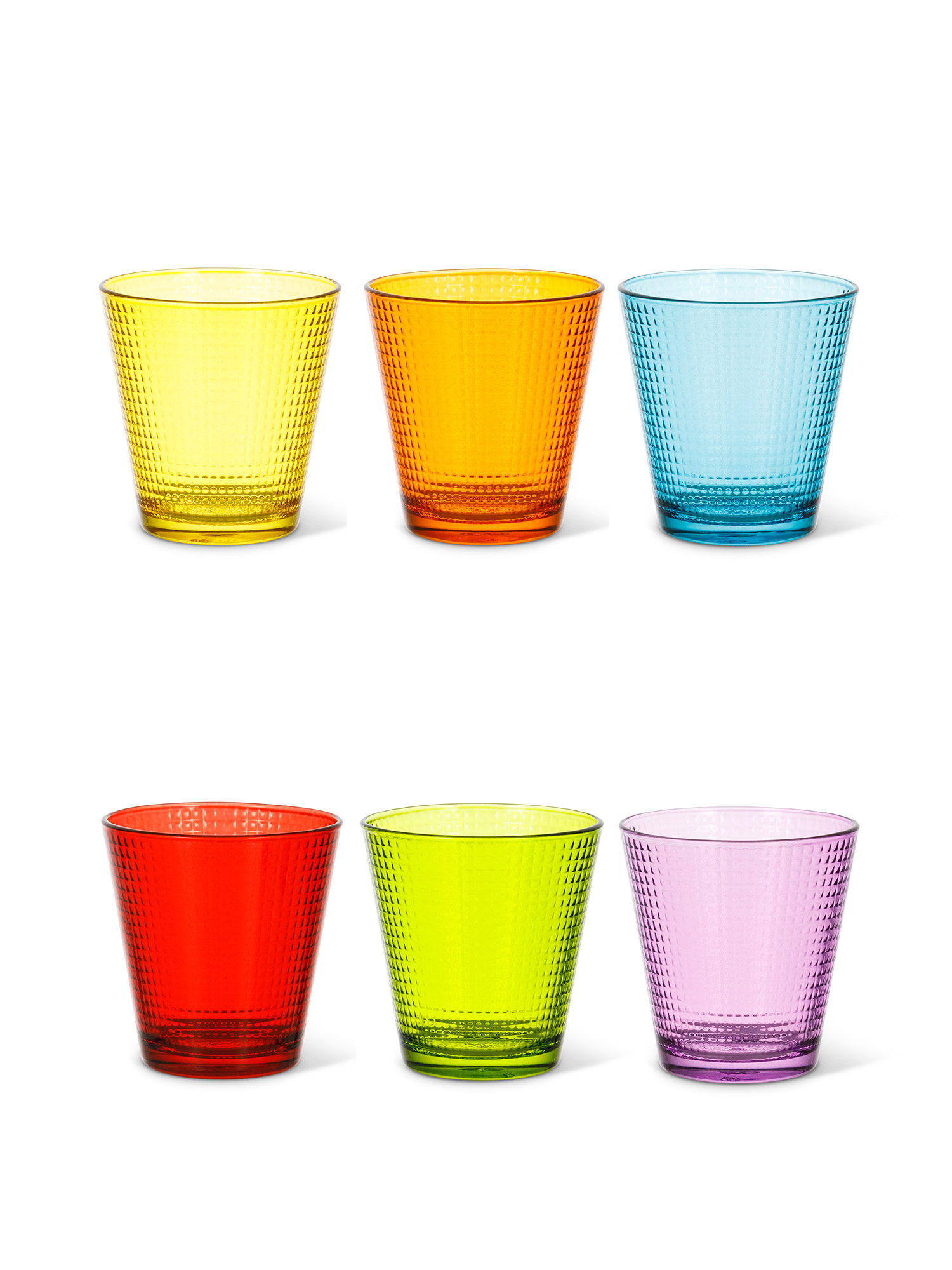 SET 6 BICCHIERI IN VETRO Questi coloratissimi bicchieri diventeranno i protagonisti della mise en place. Un tocco di colore che può accendere anche le buie giornate invernali.