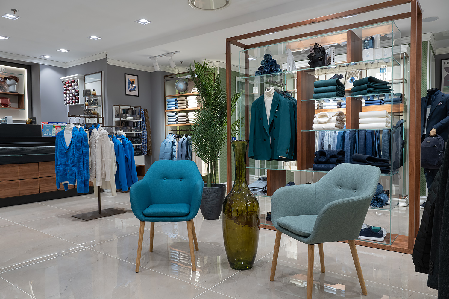 Gli arredi sono come sempre il riflesso del DNA del brand, intrisi di dettagli in marmo e legno, per creare il giusto calore e la sensazione di fiducia che ha condotto Dan John ad una crescente fidelizzazione dei suoi consumatori, unitamente all’eccellenza del prodotto.