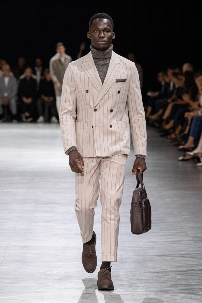 Le melodie scelte per la sfilata sono autentiche gemme della musica italiana, brani che hanno risuonato con forza nei cuori di ascoltatori di ogni angolo del pianeta. Artisti italiani che, proprio come i nostri capi e il nostro marchio, hanno saputo conquistare una dimensione globale. Una raccolta musicale che celebra l’essenza dell’italianità, affermata in tutto il mondo per la sua arte e il suo stile inconfondibile.