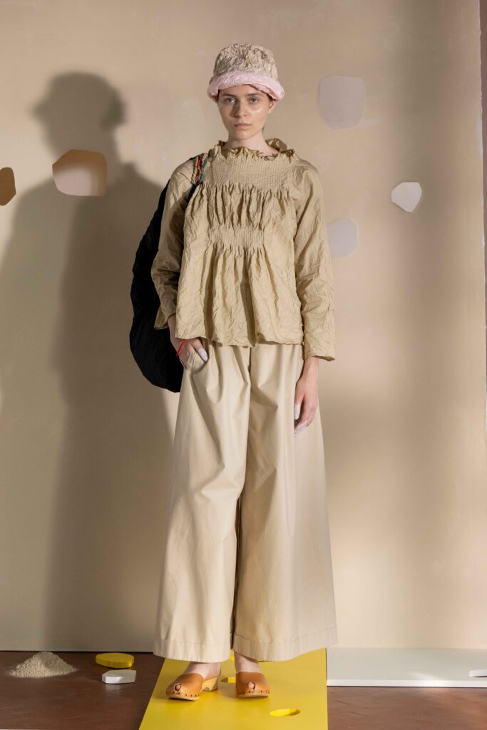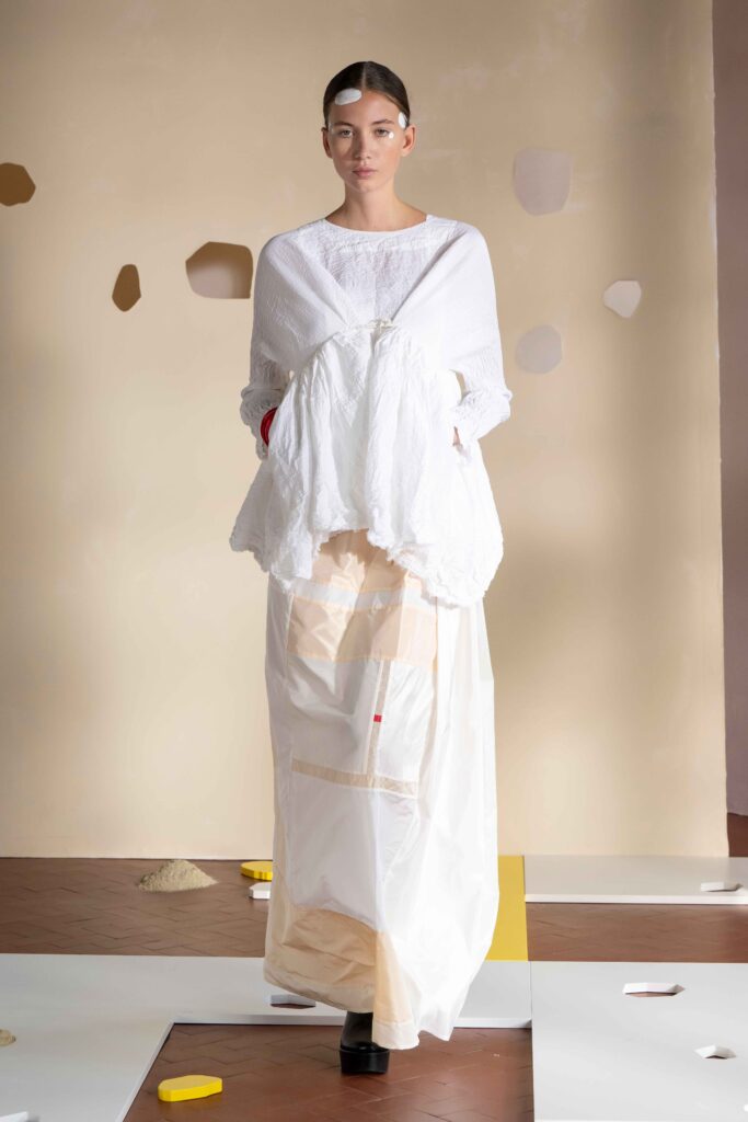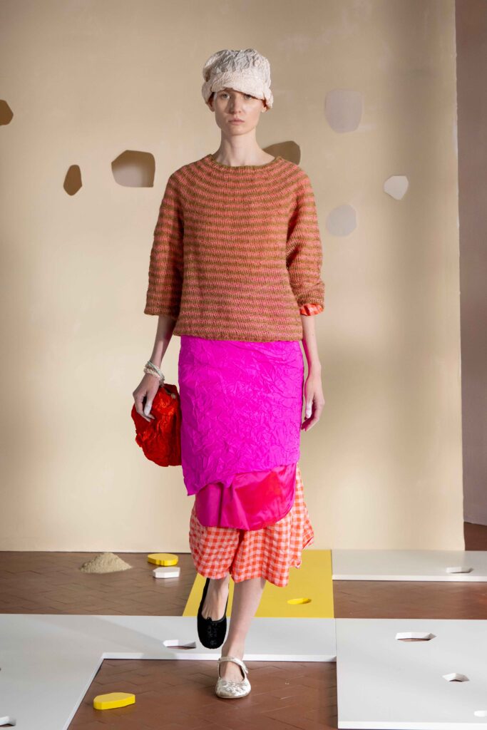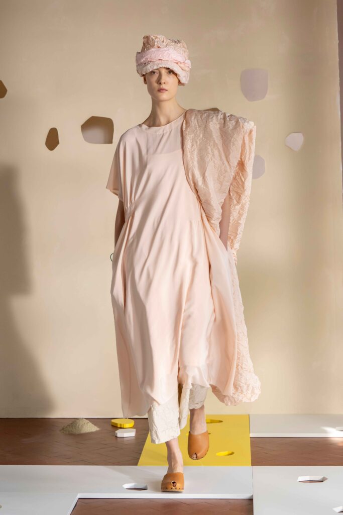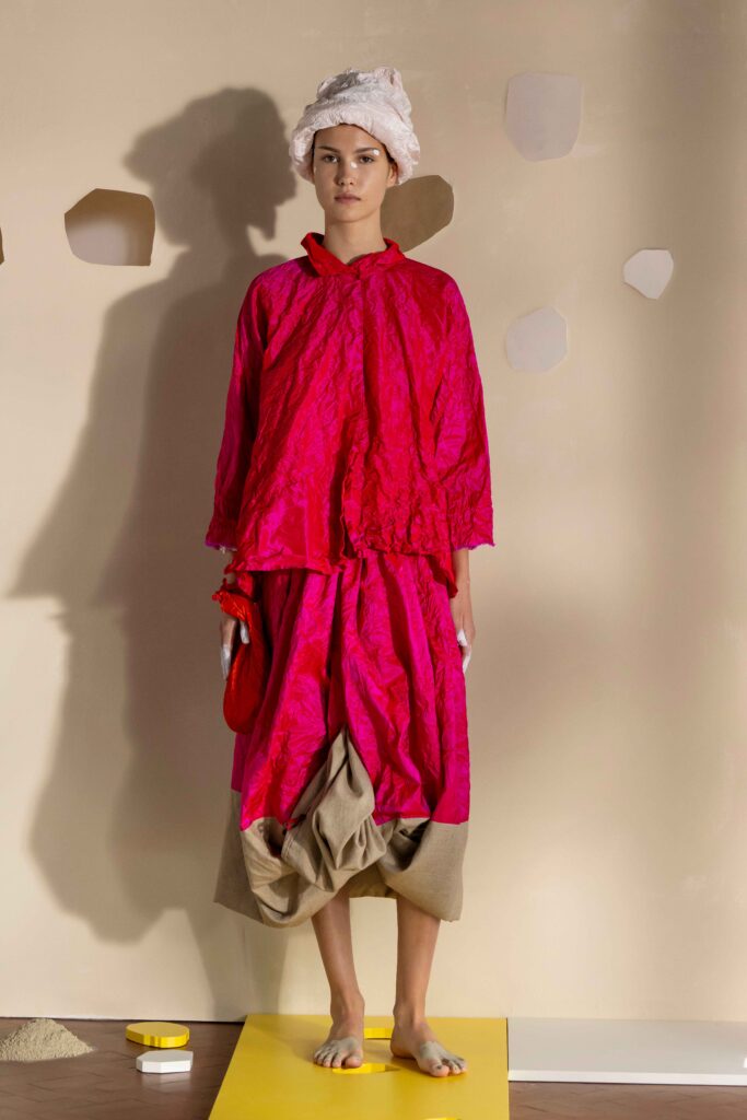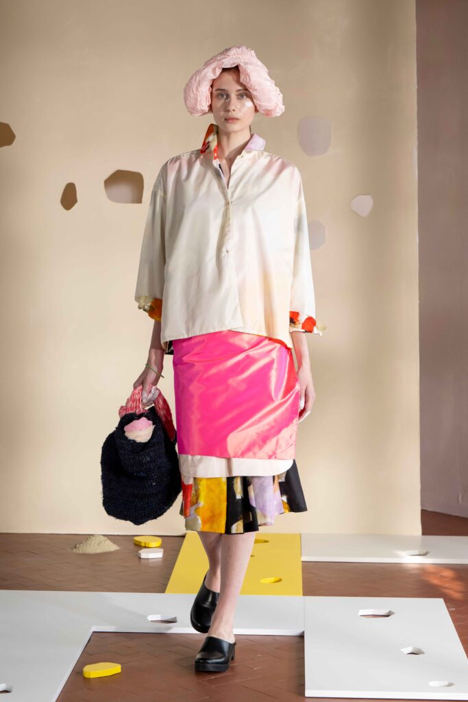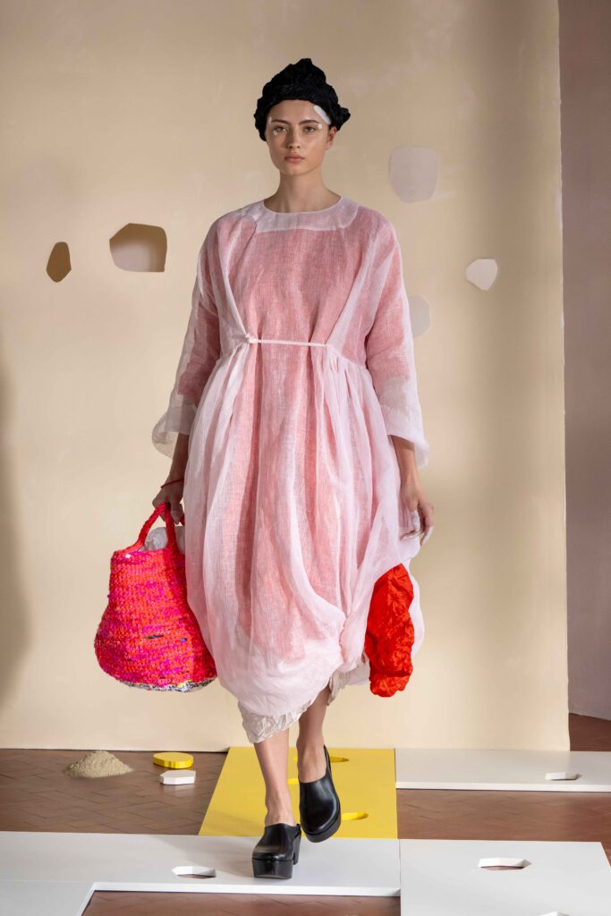 Daniela Gregis presenta la collezione Primavera/Estate 2026. Daniela Gregis scrive, disegna, scarabocchia e telefona. Le sue idee nascono dalle conversazioni e dalle relazioni con amici, parenti e sconosciuti che danno forma a creazioni, creature sempre nuove e diverse. Un tocco di rosa si fa strada lungo la collezione, la vita che si intravede nella nebbia, la felicità che illumina e il sole che scalda, rigenera, cresce, sboccia e dà frutto, giocando e creando.