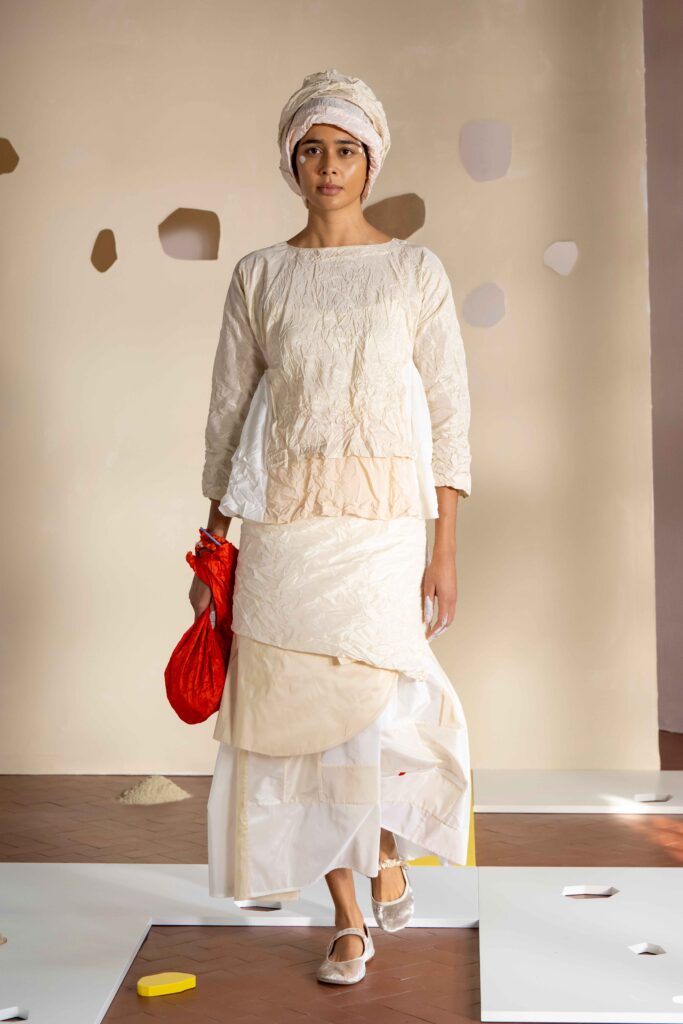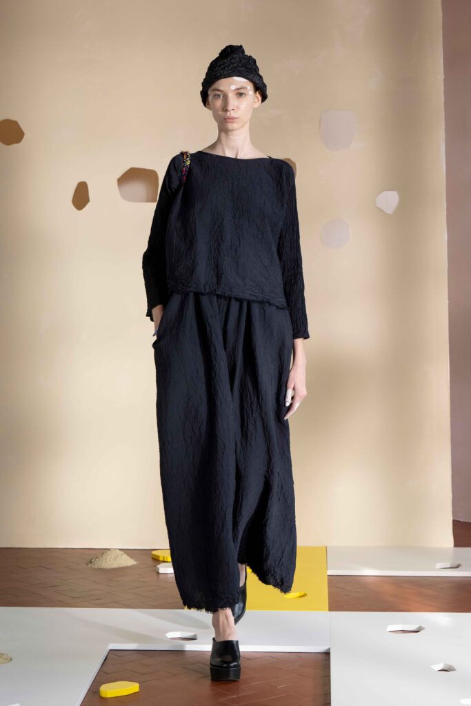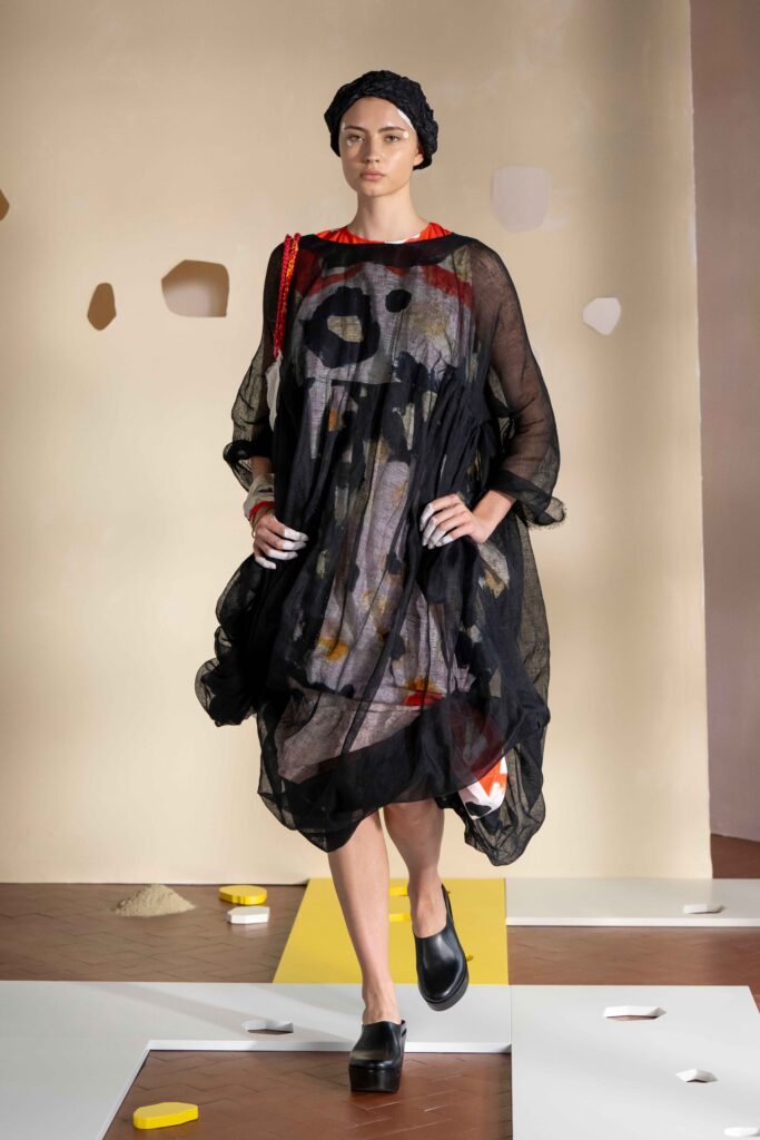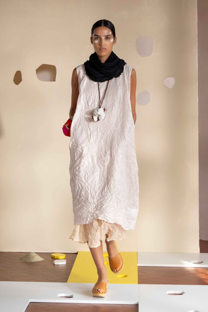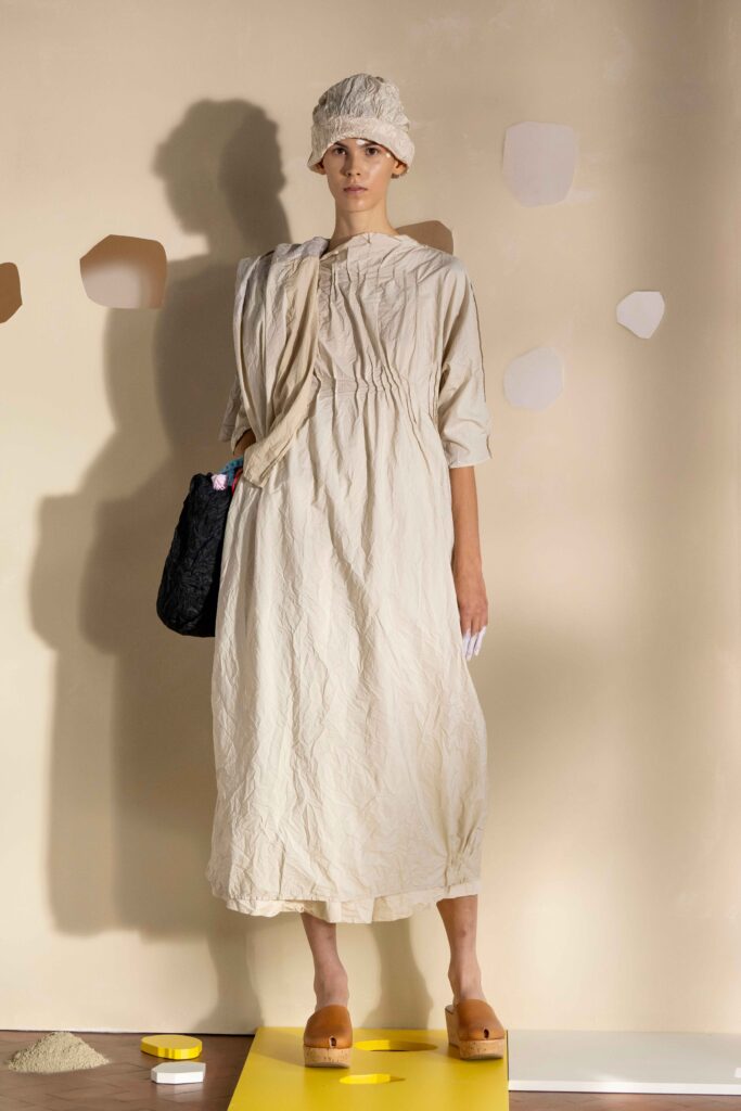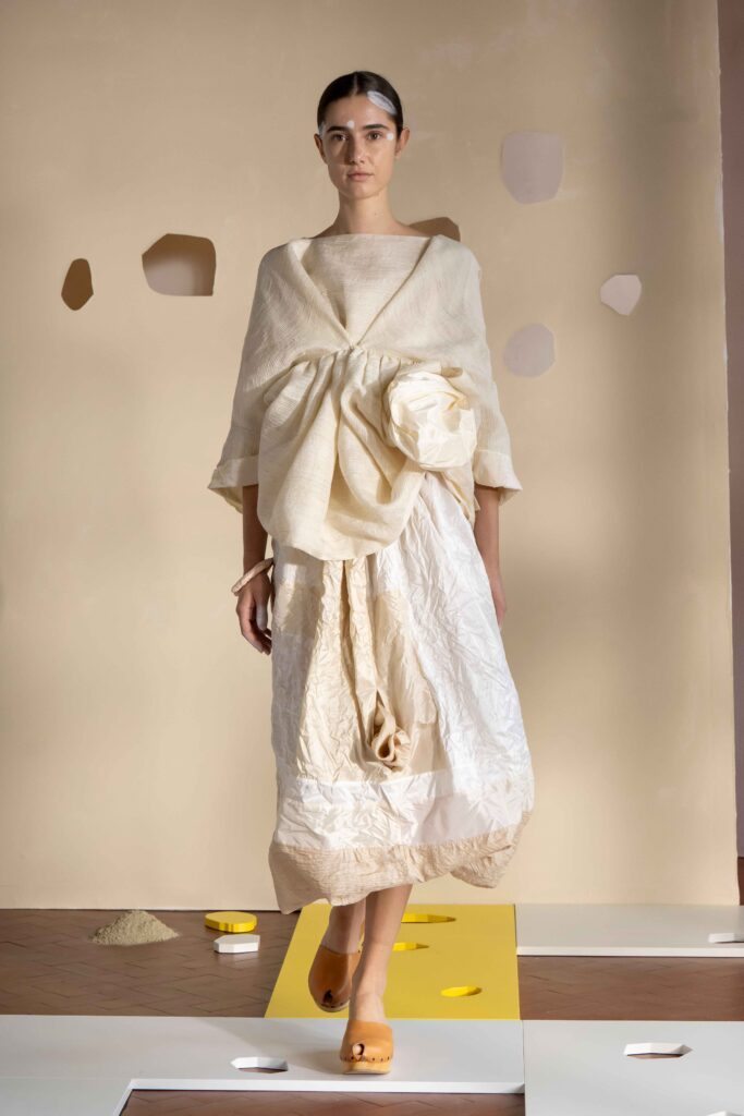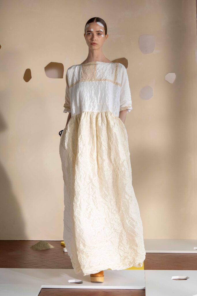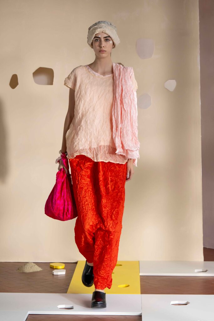 Daniela Gregis presenta la collezione Primavera/Estate 2026. Daniela Gregis scrive, disegna, scarabocchia e telefona. Le sue idee nascono dalle conversazioni e dalle relazioni con amici, parenti e sconosciuti che danno forma a creazioni, creature sempre nuove e diverse. Un tocco di rosa si fa strada lungo la collezione, la vita che si intravede nella nebbia, la felicità che illumina e il sole che scalda, rigenera, cresce, sboccia e dà frutto, giocando e creando.