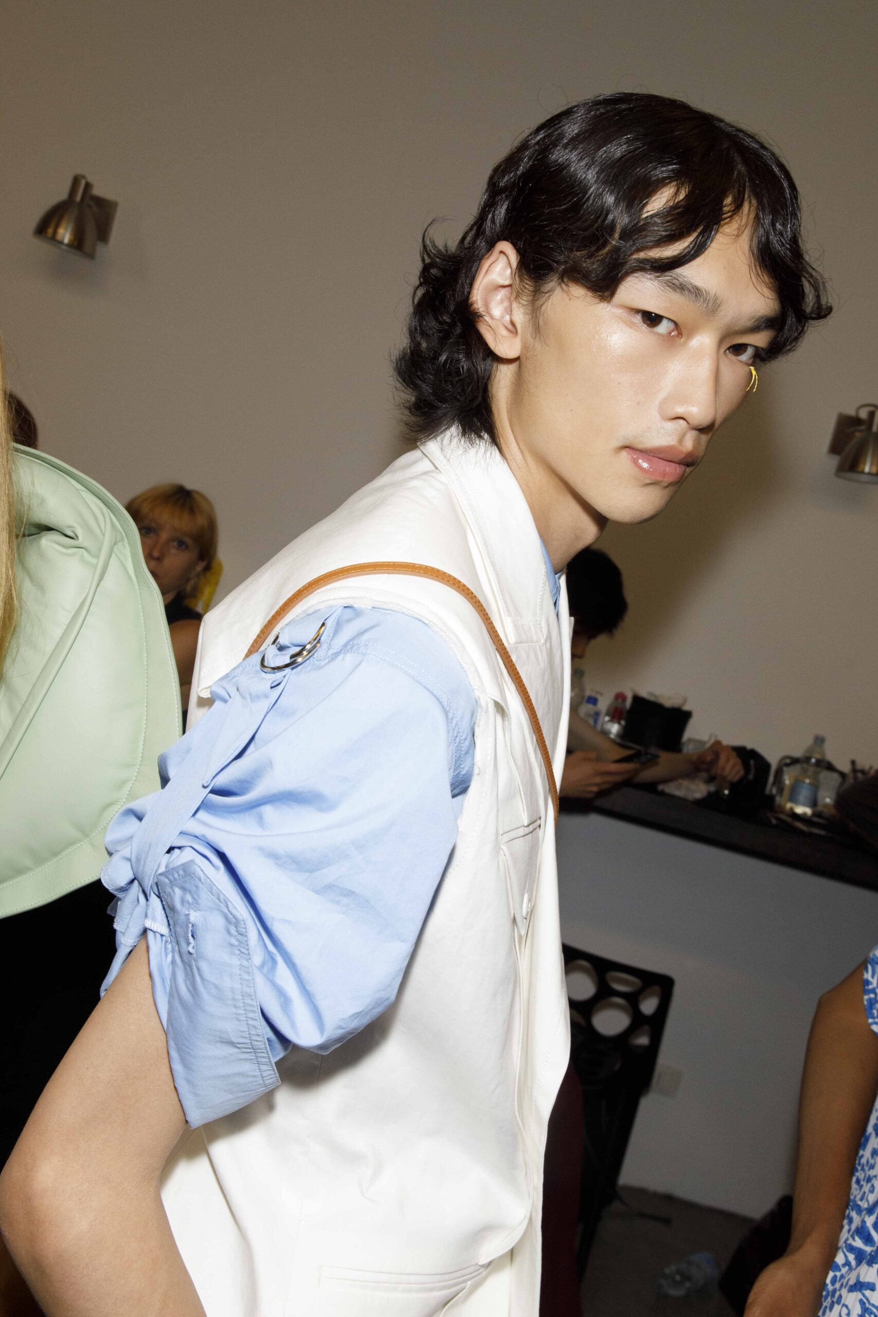 Per lo show di Federico Cina ho voluto dei look coerenti con l’ispirazione della collezione, La Ginestra, percio’ naturali ma studiati, teste “pelose” scomposte, code asimmetriche, parti frontali con trasparenze e ricci controllati. La natura risulta cosi’ protagonista negli outfit come nell’hair style, il quale e’ stato possibile anche grazie ai termoprotettori e alle lacche a tenuta forte di Davines.