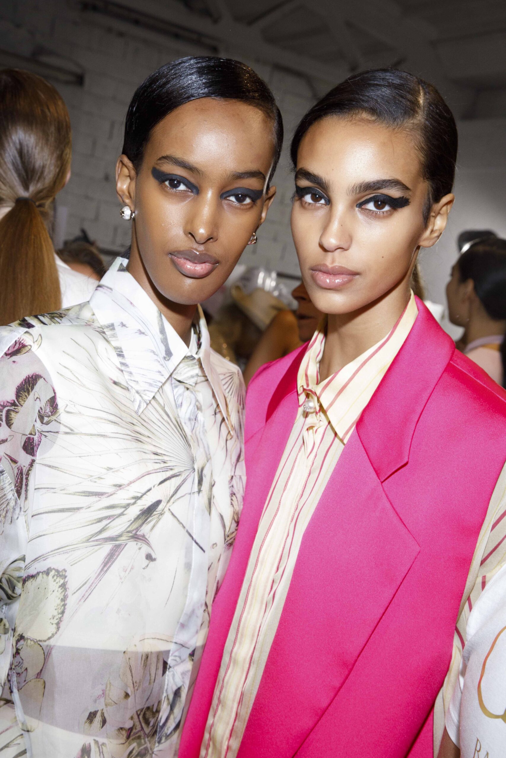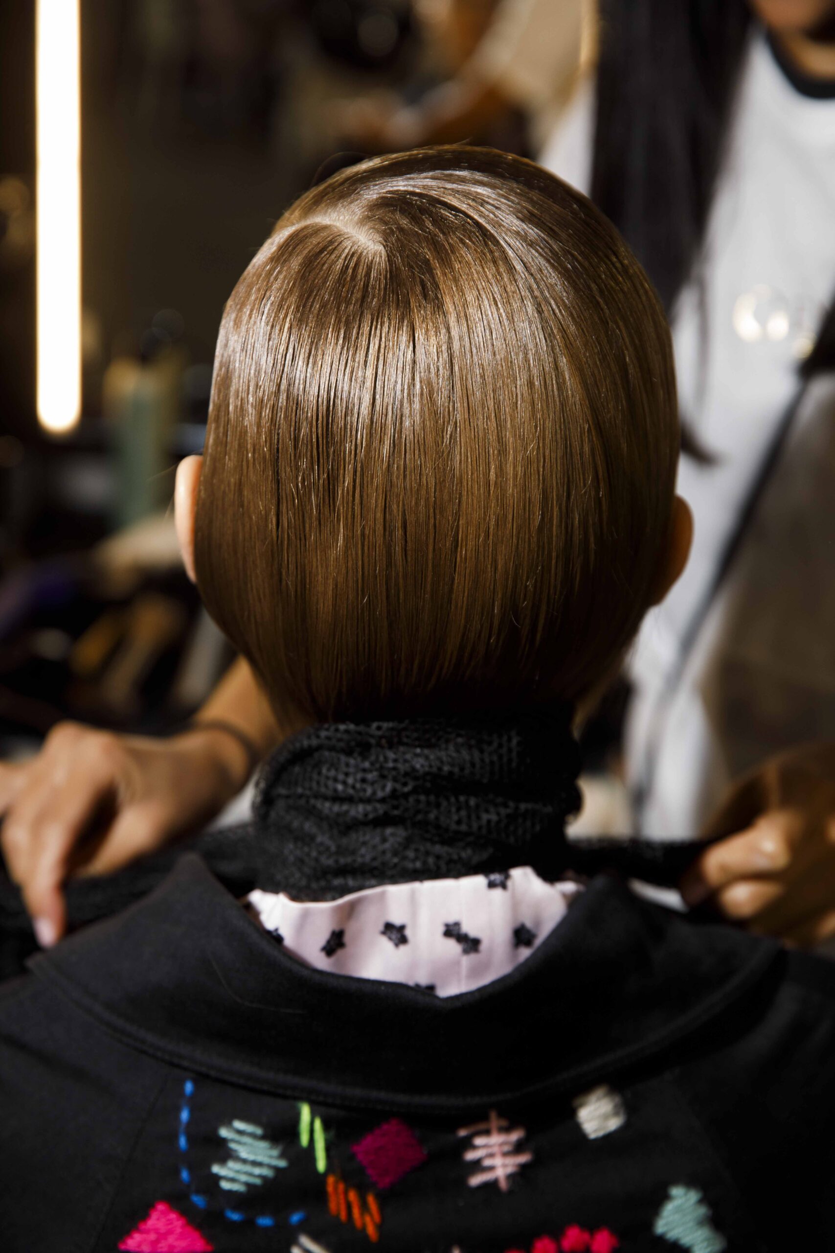 Per Genny ho studiato delle acconciature minimal rivisitate. Le teste sono tonde, compatte e scultoree con righe laterali che conferiscono rigore e eleganza. L’effetto finale e’ un movimento controllato, perfetto per valorizzare i look della maison. Per ottenerlo ho utilizzato i prodotti More Inside di Davines, in particolare la pasta duttile e le lacche con diverse tenute.