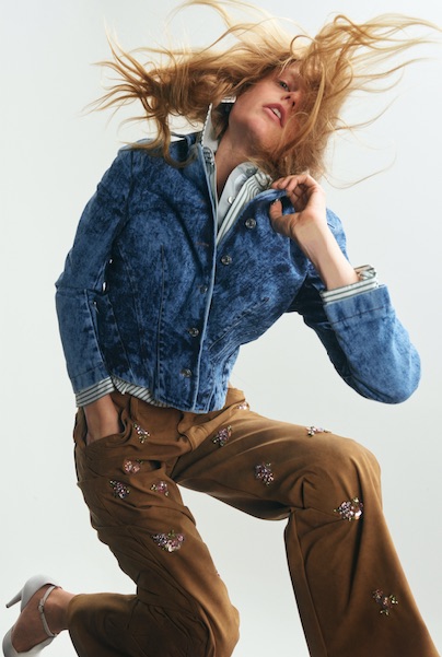 La collezione celebra l’abilità di Little Edie nel trasformare l’ordinario in straordinario, combinando capi di lusso con indumenti logori e reinventando le regole della moda con audacia. Questa filosofia si traduce in capi che esaltano il valore del tempo e della memoria, come gonne che diventano top e tessuti usurati elevati a capolavori sartoriali.