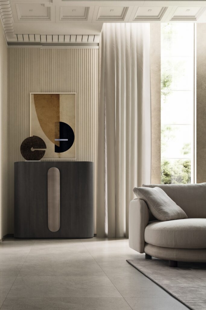 Madia Circus: disegnata da Stefano Spessotto – risolve con stile le esigenze di storage della camera contemporanea, unendo praticità, funzionalità e bellezza. Il design si distingue per un linguaggio formale sofisticato, dove linee geometriche e semicerchi creano una composizione dinamica. L’ispirazione alle architetture di Le Corbusier si manifesta nella pulizia delle forme e nell’equilibrio delle proporzioni, mentre la maniglia in metallo laccato diventa un dettaglio prezioso che eleva il mobile da contenitore a scultura funzionale.