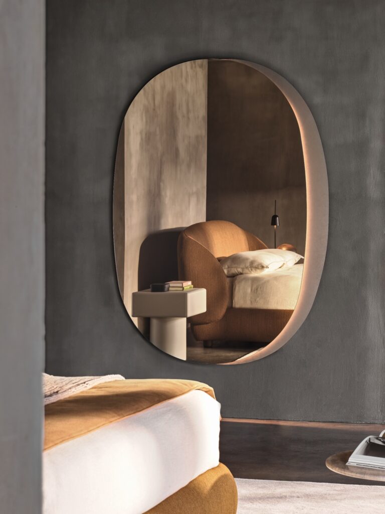 Letto Avalon: disegnato da Oscar e Gabriele Buratti, rappresenta la sintesi perfetta tra estetica contemporanea e funzionalità studiata per la zona notte. Il suo design distintivo si caratterizza per una testiera alta che conferisce presenza architettonica all’ambiente, mentre le linee curve bilanciano la forza visiva con un’eleganza naturale. Un sistema di fasce e cuciture: una soluzione tecnica permette infinite personalizzazioni attraverso l’accostamento di materiali diversi.