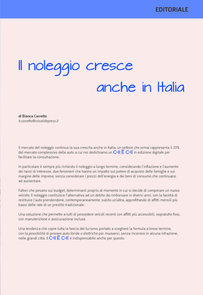Esce oggi il nuovo “Chi è Chi del Noleggio” – e non è un caso che arrivi proprio adesso, poco prima delle vacanze.