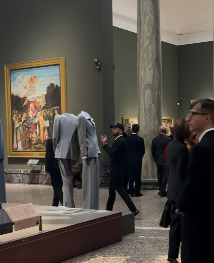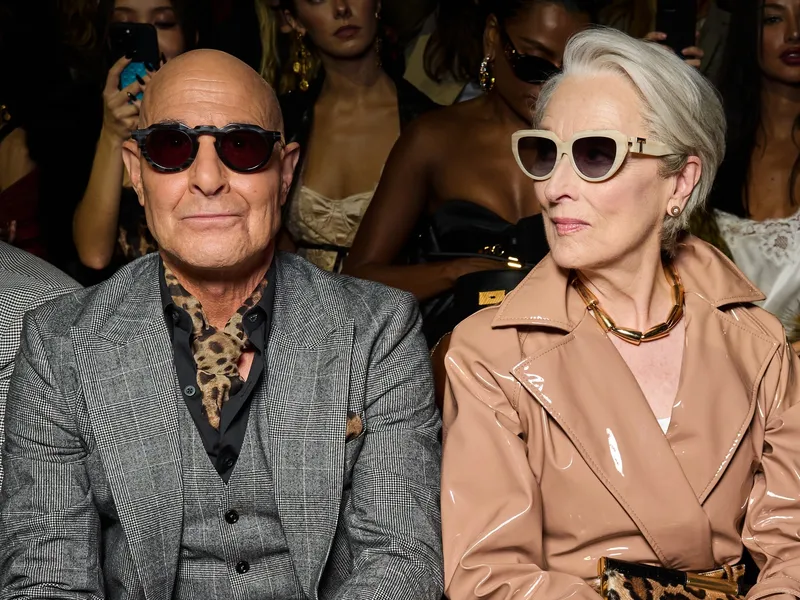Noi giornalisti eravamo un po’ in imbarazzo, ci si aspettava che almeno alcuni designer prendessero posizione, non servivano manifesti ma segni sottili, un silenzio iniziale o finale al posto della musica come atto di rispetto, una passerella spoglia, un abito nero a lutto… segni piccoli ma chiari. E invece la notizia che ha fatto il giro del mondo è stata che alla sfilata di Dolce & Gabbana si girava una scena del sequel del Diavolo Veste Prada. In prima fila Meryl Streep e Stanley Tucci hanno fatto un’apparizione a sorpresa al Metropol, seduti in prima fila accanto a Michele Morrone e Naomi Campbell che in quanto ad espressività lasciavano a desiderare. A quando pare essere una comparsa del film sta diventano l’ossessione di molti, ho saputo che un fotografo che conosco ha girato una scena durante la fashion week, ma se volete sapere qualcosa chiedete a lui.