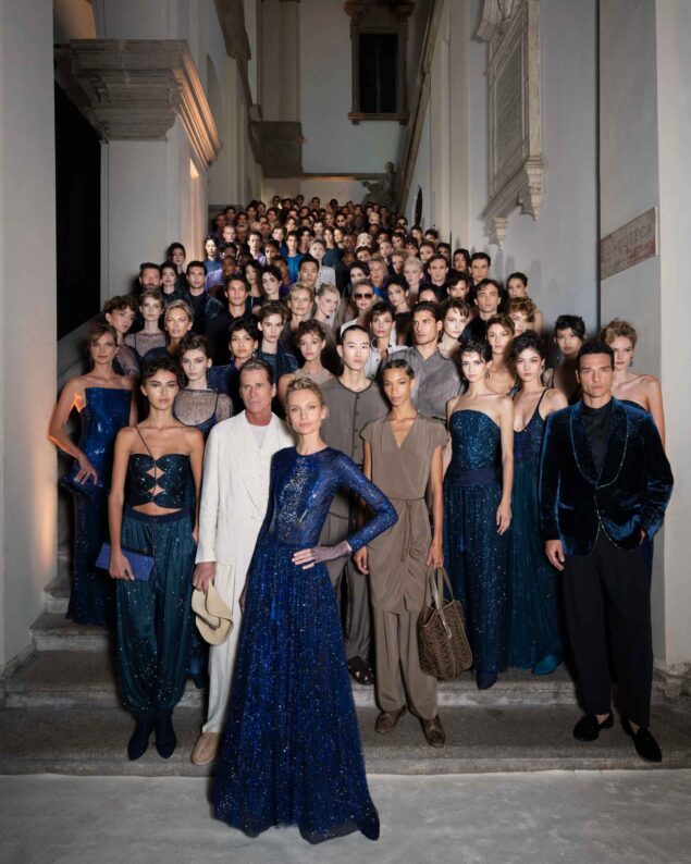 E tante, tantissime lacrime ho visto alla sfilata di Giorgio Armani per celebrare i 50 anni di carriera all’Accademia di Brera, l’ultima che lo stilista ha firmato. Non era una sfilata ma un atto sentimentale, un saluto carico di emozione, un racconto che ha intrecciato arte, cultura e vita personale. Portare la collezione in un luogo simbolo della formazione artistica milanese ha significato riconsegnare la moda al suo statuto più alto: linguaggio visivo, gesto creativo e patrimonio culturale. L’atmosfera era sospesa, quasi intima, noi umani e delle icone come Richard Gere, Cate Blanchett o Lauren Hutton accarezzati dalle stesse emozioni, uniti nel silenzio che diventa racconto. Ho notato che Beka Gvishiani mentre girava tra le sale allestite del museo indossava un cappellino nero, al posto del solito Blu Royal, non ho capito se è la versione lutto o black tie.