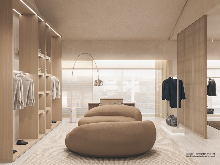 Progettato dallo studio milanese Parisotto + Formenton Architetti, il negozio è un esempio raffinato di smart luxury: interni caldi e accoglienti, arredi in rovere chiaro, finiture in travertino e acciaio spazzolato, palette naturali, il tutto pensato per creare continuità tra estetica e funzionalità. Spazi ampi, vetrate luminose, una suite semi-privata, un lounge esclusivo e persino un biliardino firmato Teckell danno vita a un ambiente sofisticato e informale al tempo stesso.