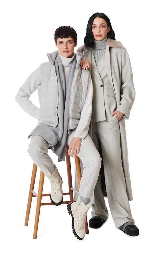 Gli abiti, pensati per essere indossati sia nelle occasioni speciali che nei momenti meno formali, sono realizzati in pura seta e flanelle pregiate misto cashmere. Anche la proposta di pantaloni si amplia, per valorizzare la donna Eleventy in ogni occasione.