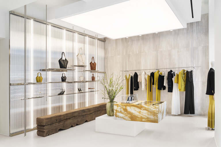 Situata nell’esclusivo quadrilatero della moda, tra Via Manzoni e Via della Spiga, la boutique, di 450 mq, ospitata all’interno di un palazzo liberty di fine ‘800, tutelato dalla Sovrintendenza ai Beni Culturali, traccia un racconto architettonico attraverso il nuovo store concept che ridefinisce la presenza del brand nel cuore della città.