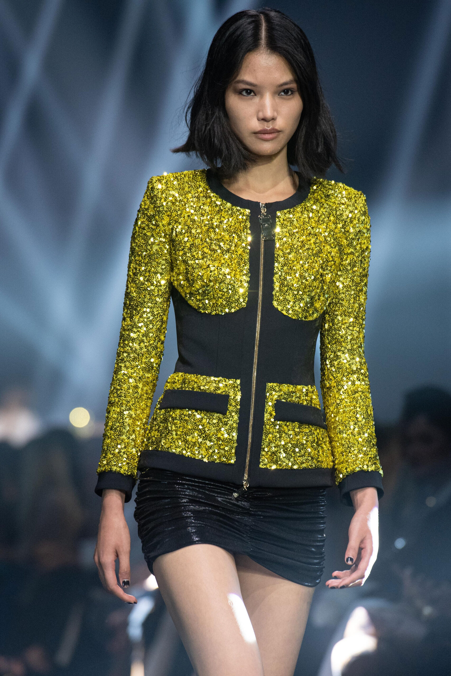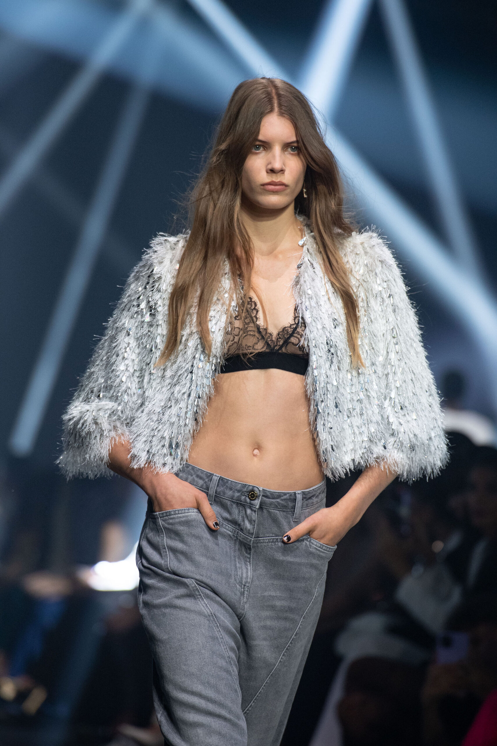 La passerella si tramuta in un concerto estetico fatto di volumi che si contrappongono, capi dalle silhouette pulite con tagli minimali e contrasti di proporzioni tra l’oversize e il super fit. Micro short e mini dress si alternano alle nuove interpretazioni rock dei red carpet abbinati a stivali biker.